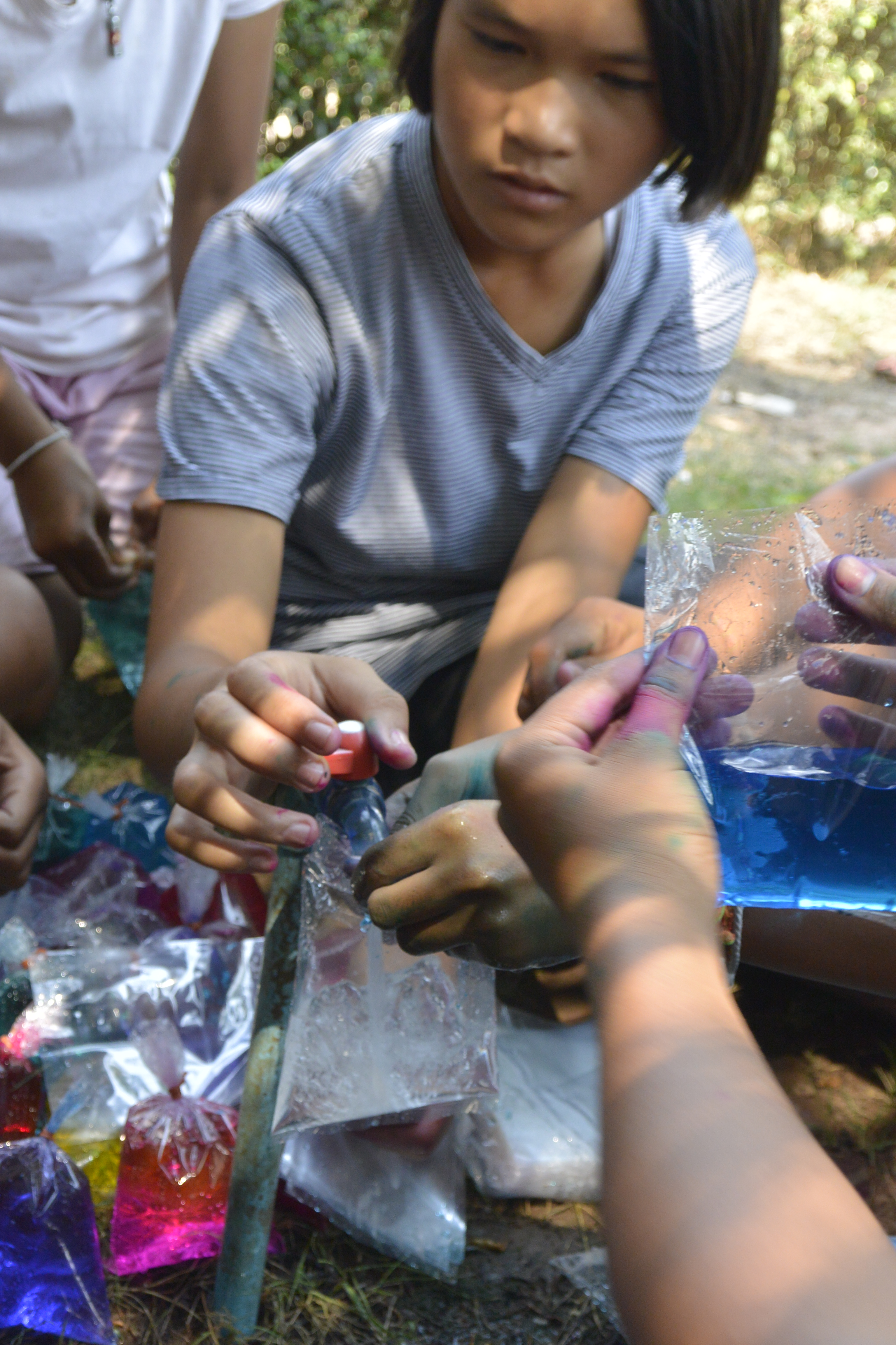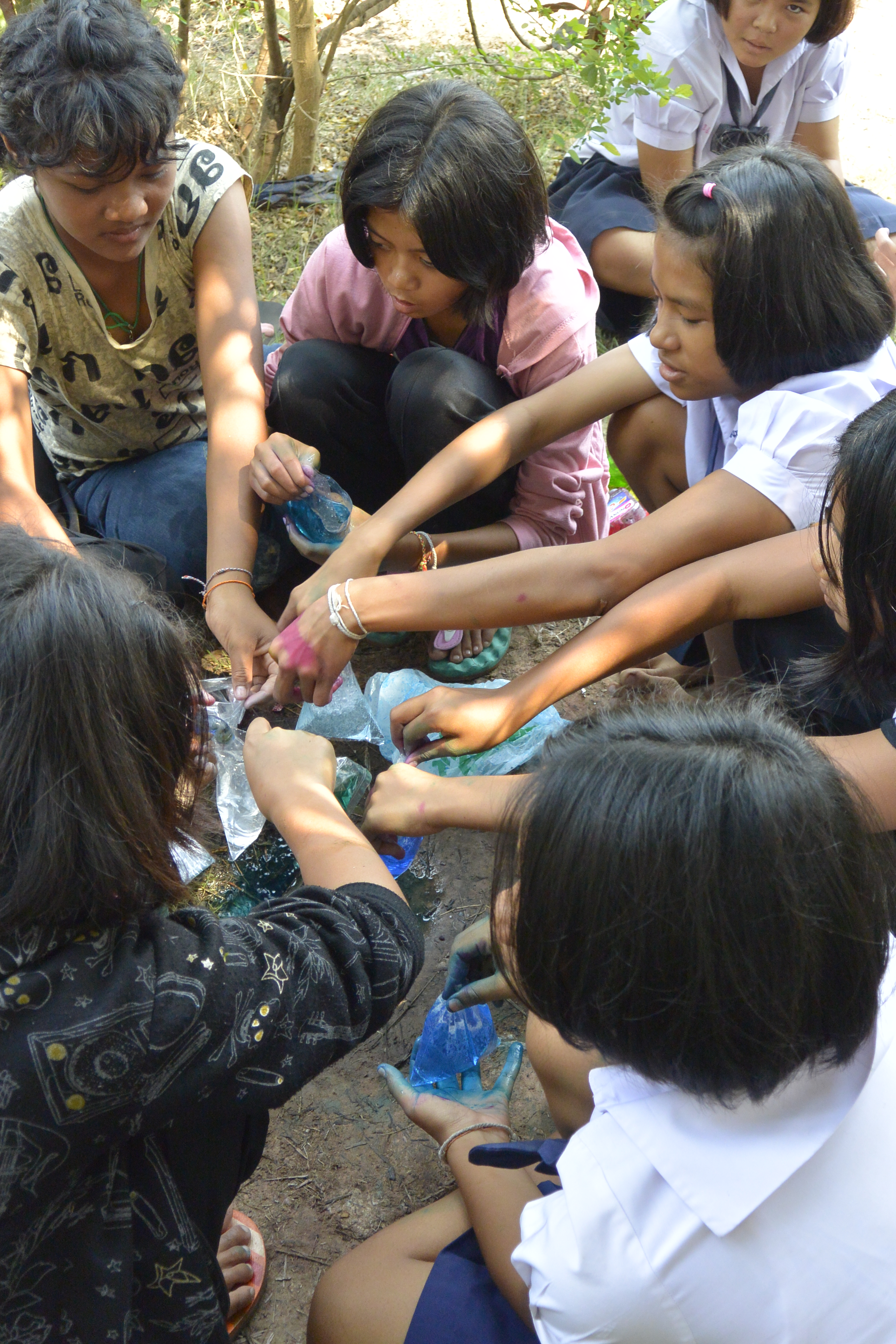 I also spent Monday helping to decorate for the school’s graduation ceremony, which included filling bags with colored water, drawing a picture of a student in a cap and gown and hanging it all up for a photo area. The school schedule in Thailand has the schools ending around mid- to the end of March because March, April and May are the hot season here. And there is no way that any one would be able to do any kind of teaching or learning in the heat. So, for the end of the year, the kindergartners and the 6th graders had a graduation ceremony.