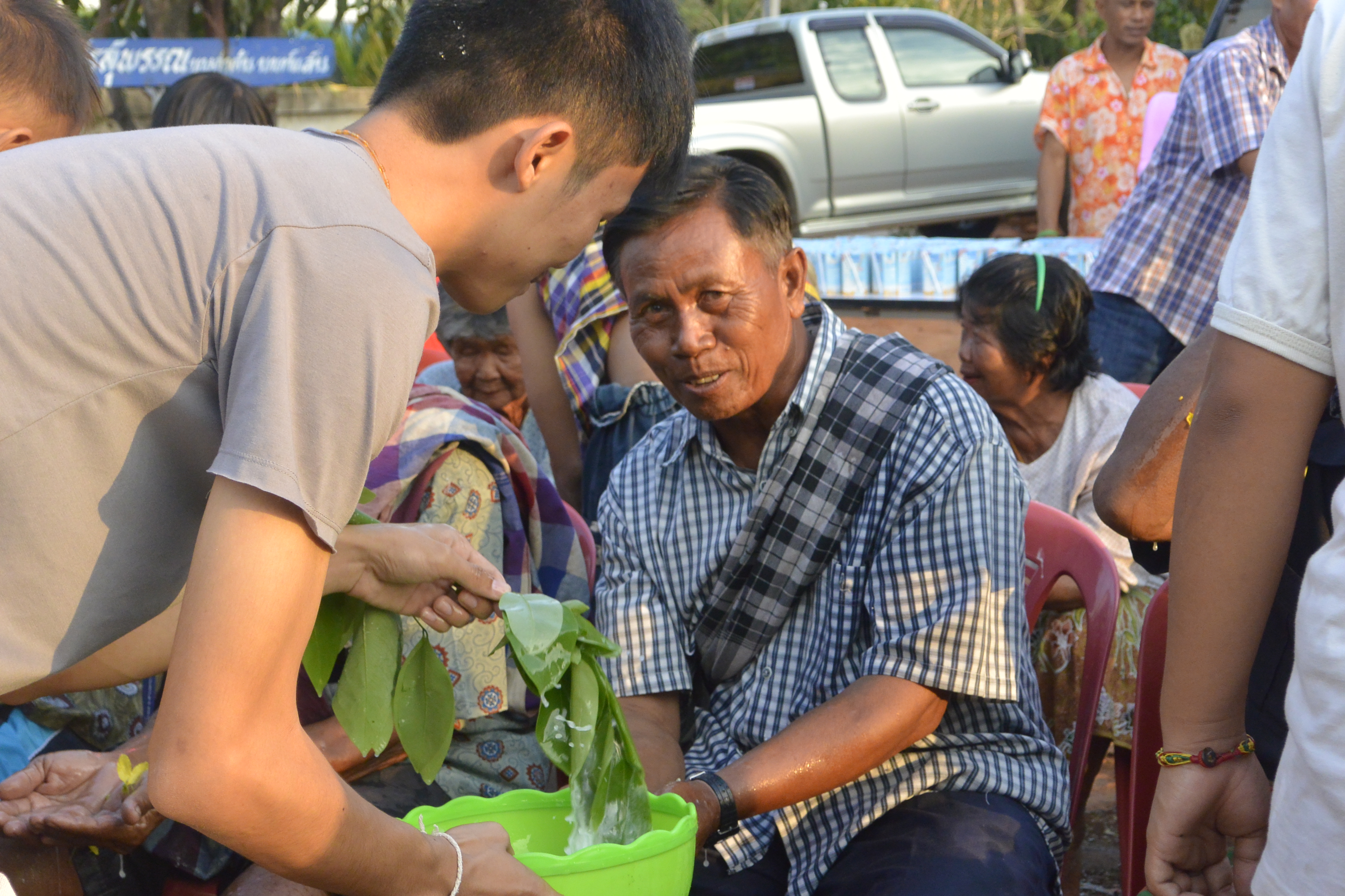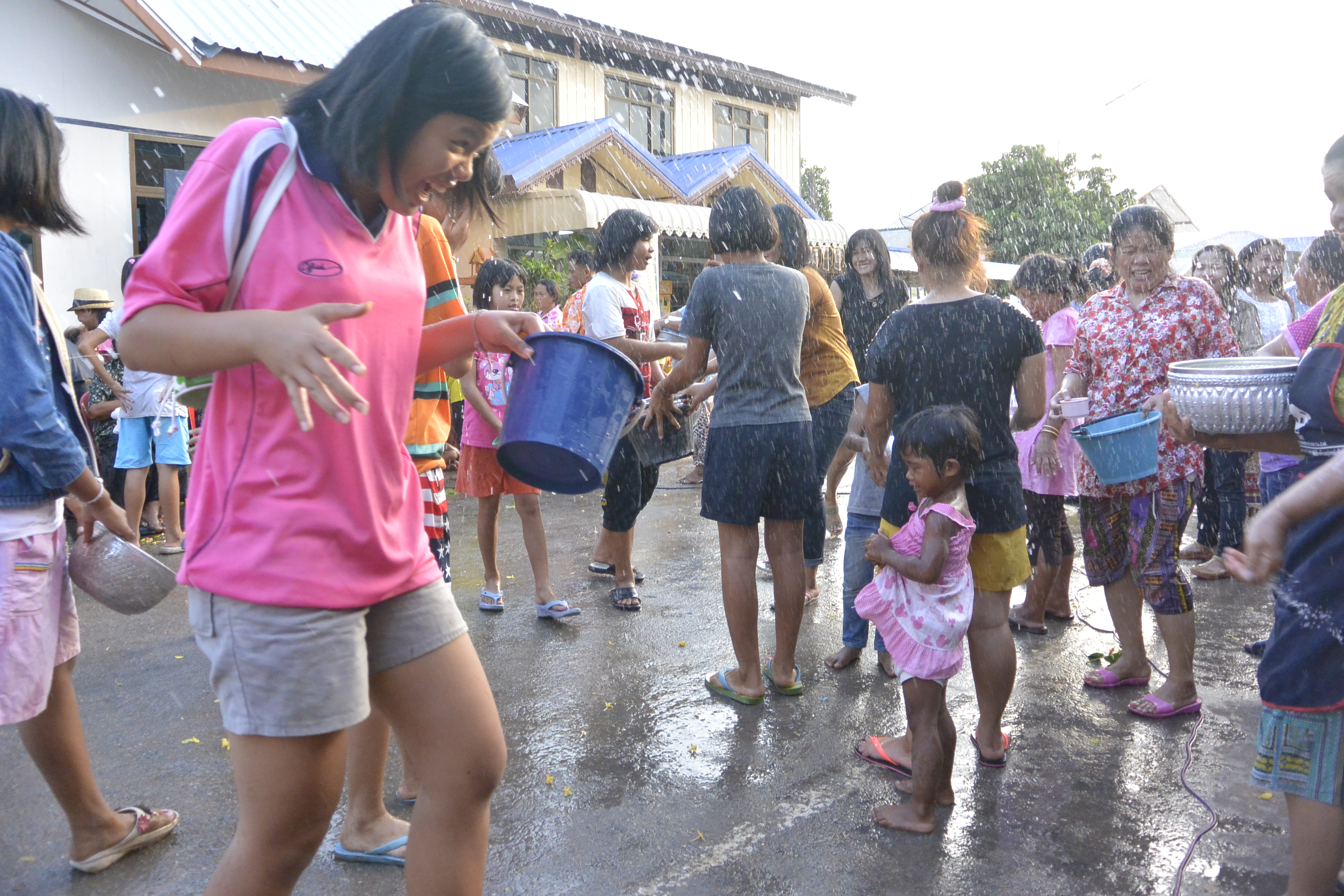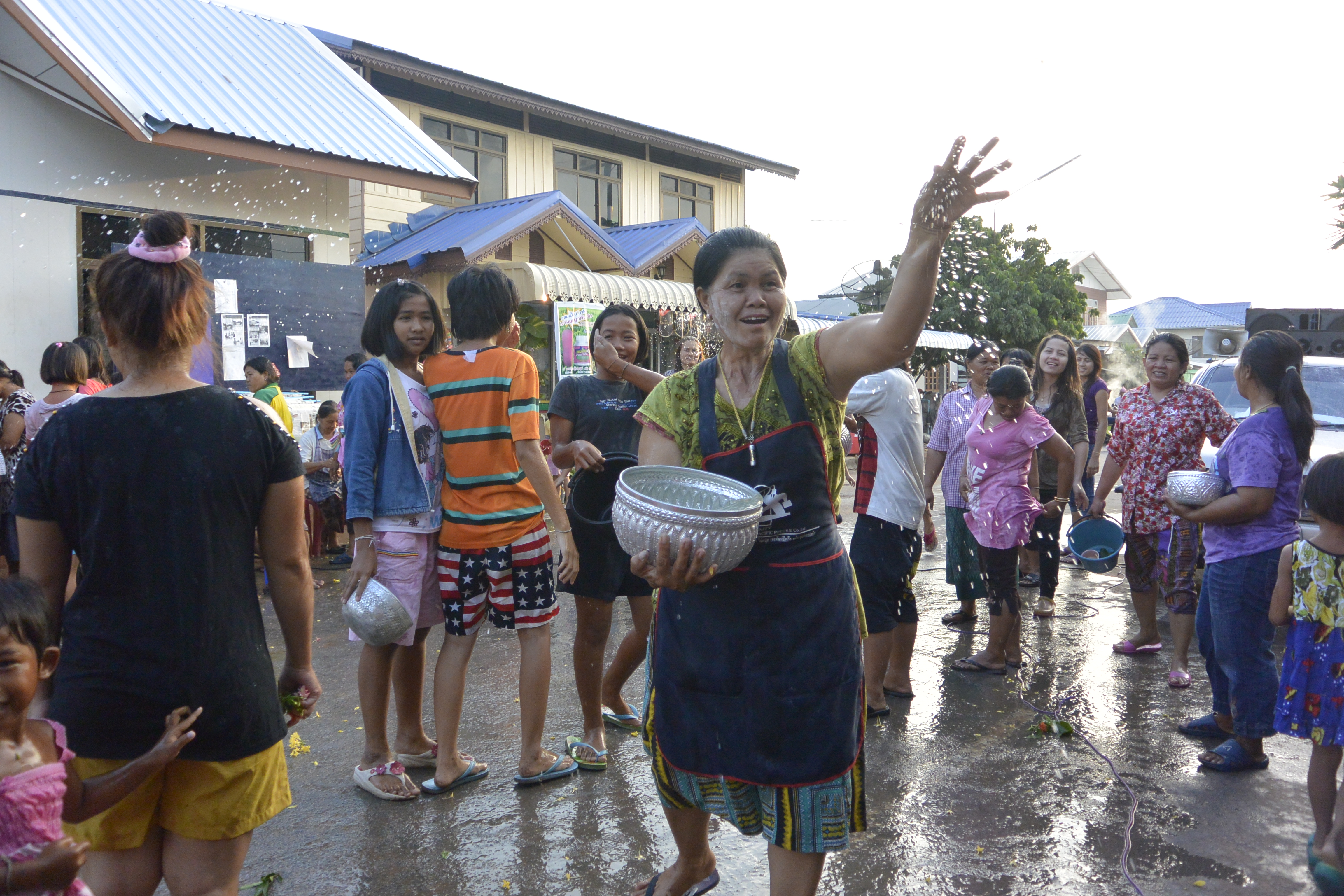 A universal view of the marking of a new year is that it comes as a new beginning. Here in Thailand, part of the new beginning to show respect to the elders and wash off the bad luck from the previous year. The weekend kicked off on Thursday when the village gathered in the street and all the elders sat on chairs with everyone else facing them. A man did some call and response chanting over the microphone and soon everyone was up in a line with their buckets of water, scented with flowers, to sprinkle on the hands of the oldest in the community. Once everyone cycled through, some people began to throw their water at the crowd eliciting laughter, smiles and more water throwing. But that was just the beginning.