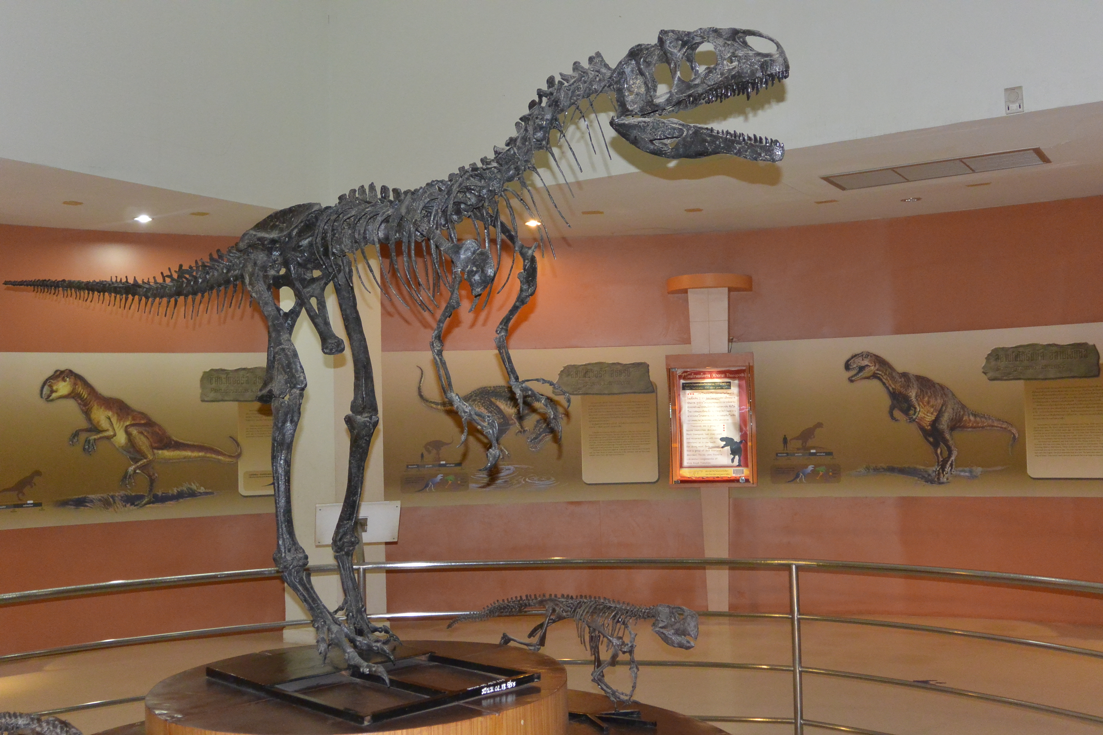 After the prehistoric elephant hall was my favorite part, and the part that I had been looking forward to since we parked, the dinosaur hall. (Side note: dinosaur in Thai is di-no-sao.) First you walk through a tunnel that details the different dinosaur eras and epochs. In the tunnel is an animatronic T. Rex head that is motion activated and thoroughly terrified us when we first set it off. Once again, there is a lot of great information and a lot of attention paid to the dinosaurs that have been found in Thailand. This time there was an informational video and an animated fictional video. There was also a neat diorama and some great fossils, including a complete allosaurus skeleton.