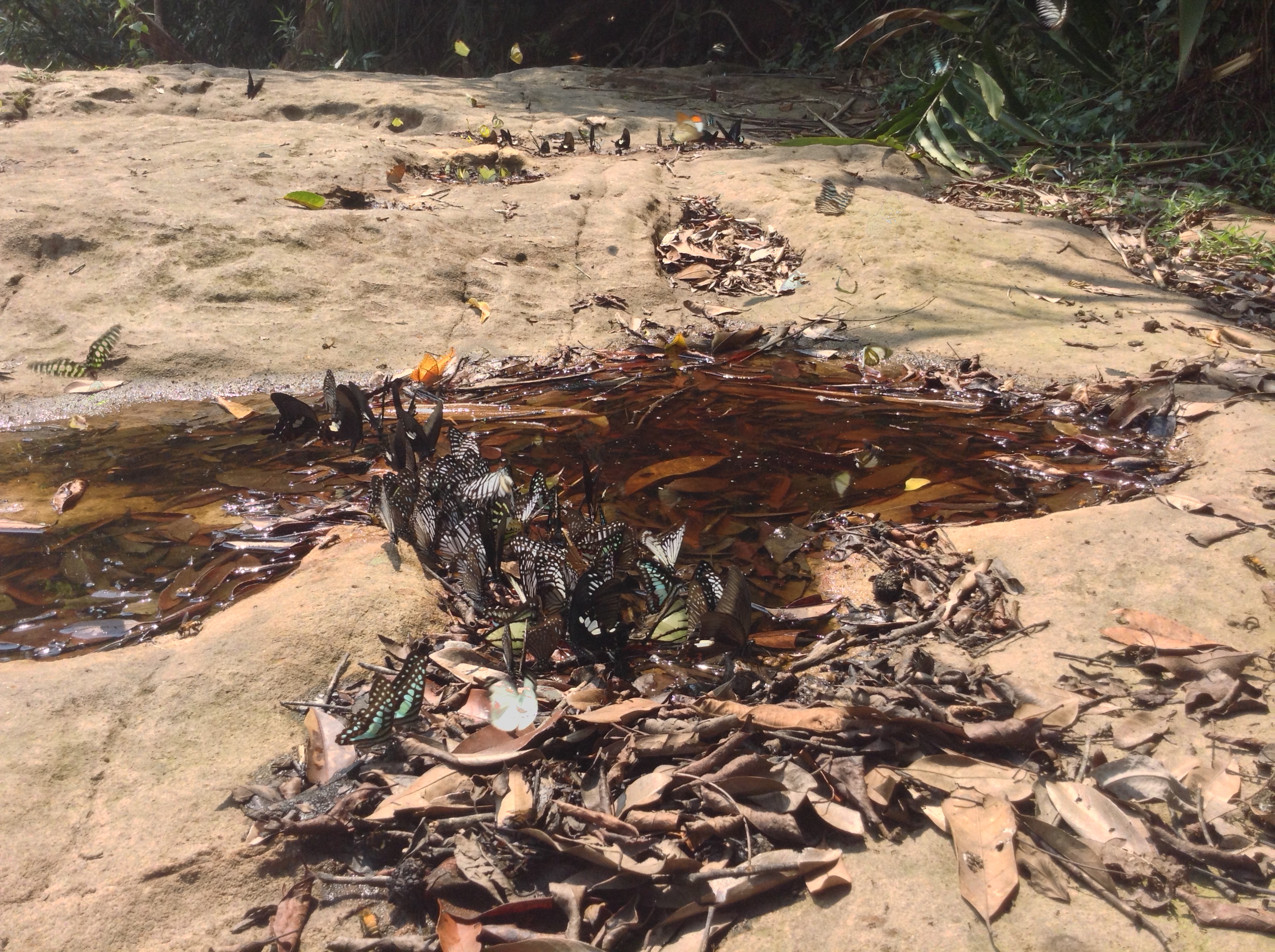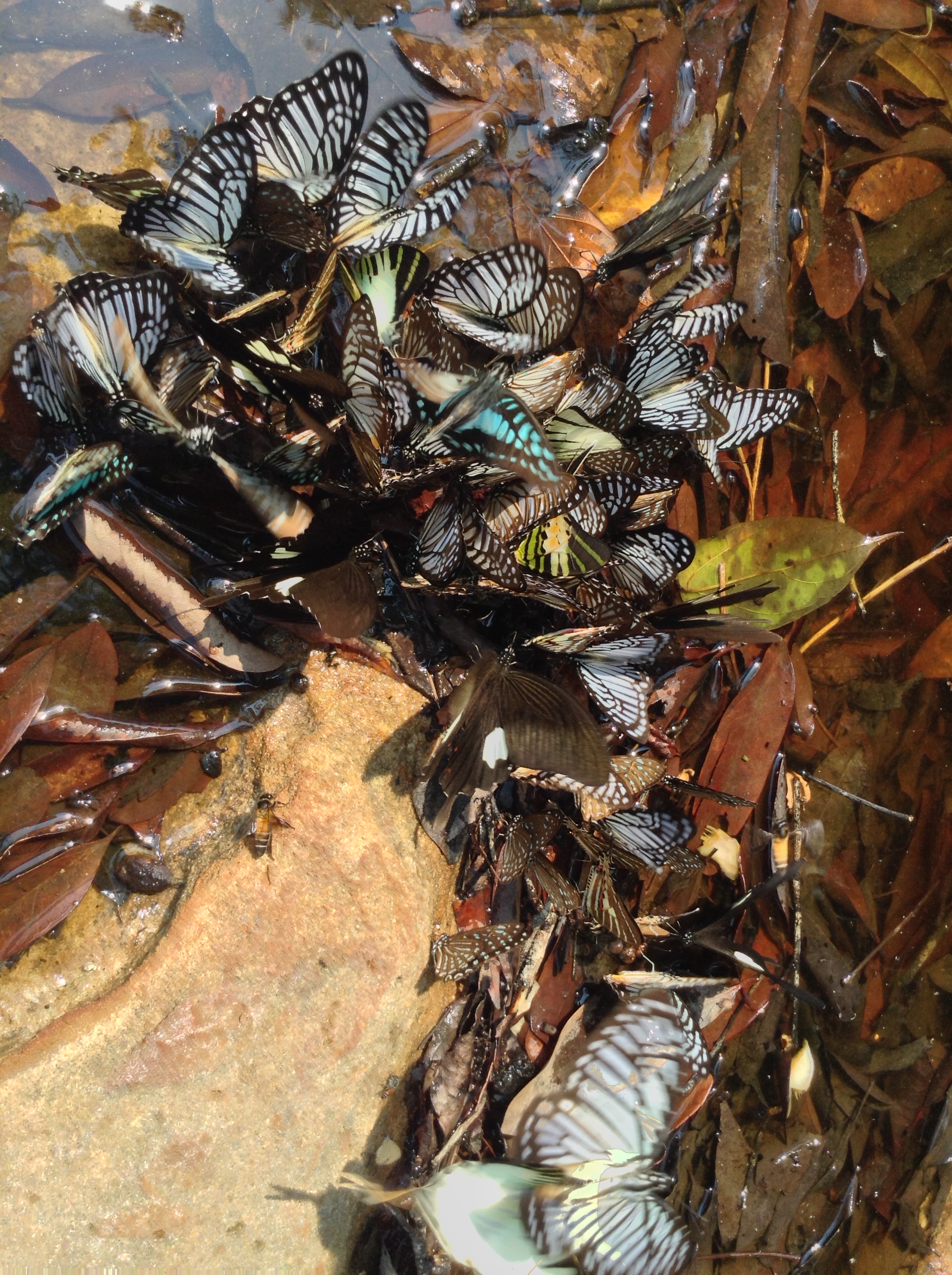 What was not so glorious about the rain is that is scares away the jellyfish. Yes, in a single location in the river that runs through Khao Koh, there lives an endemic species of freshwater jellyfish, supposedly the only freshwater jellyfish in Asia. We took the boat ride to the location, but didn’t see any. What we did see was a swarm of butterflies. The locals spread this rock with a salt and honey mixture to lure the butterflies there and the guide was careful to mention that it is not harmful to the environment.