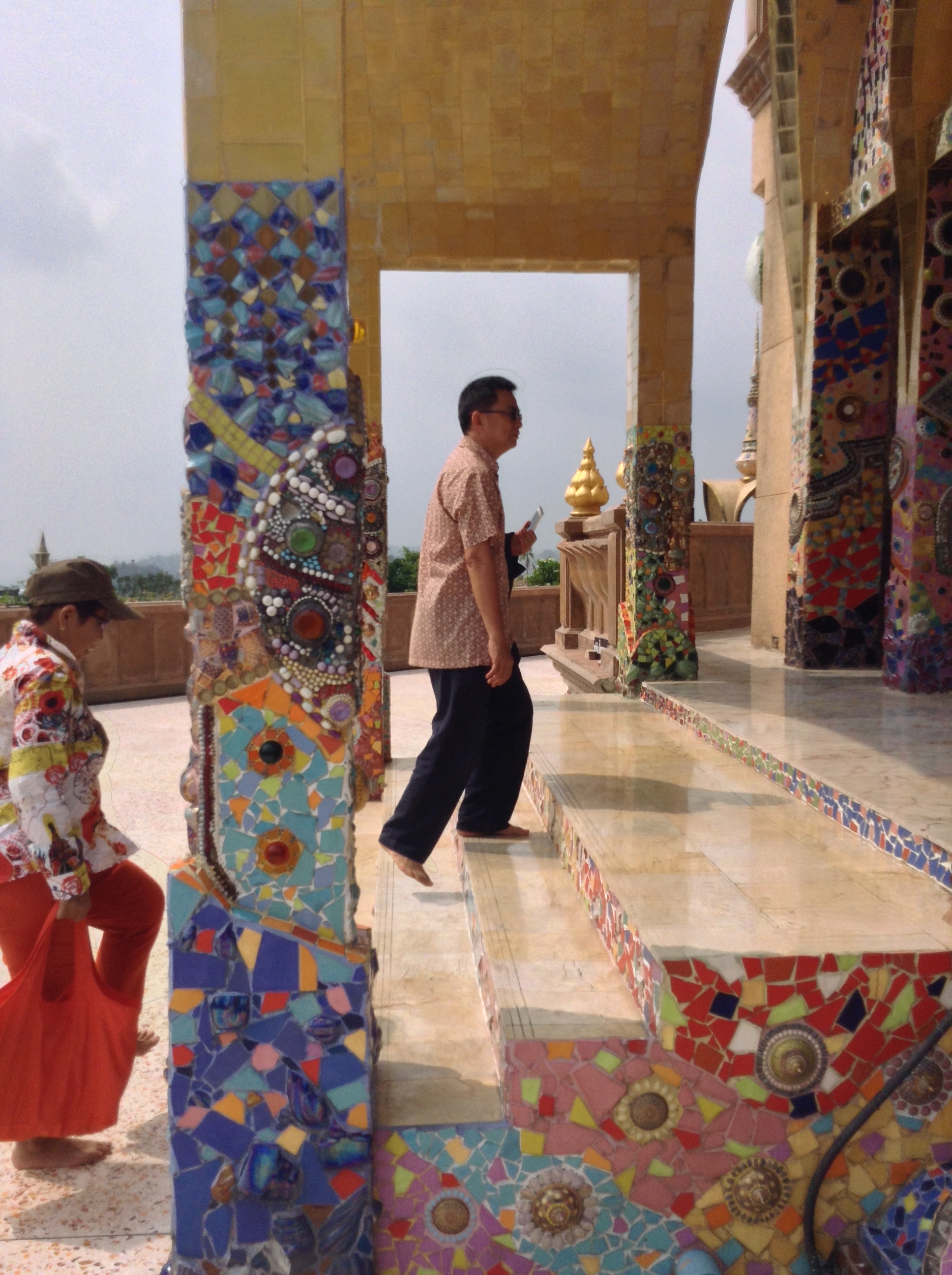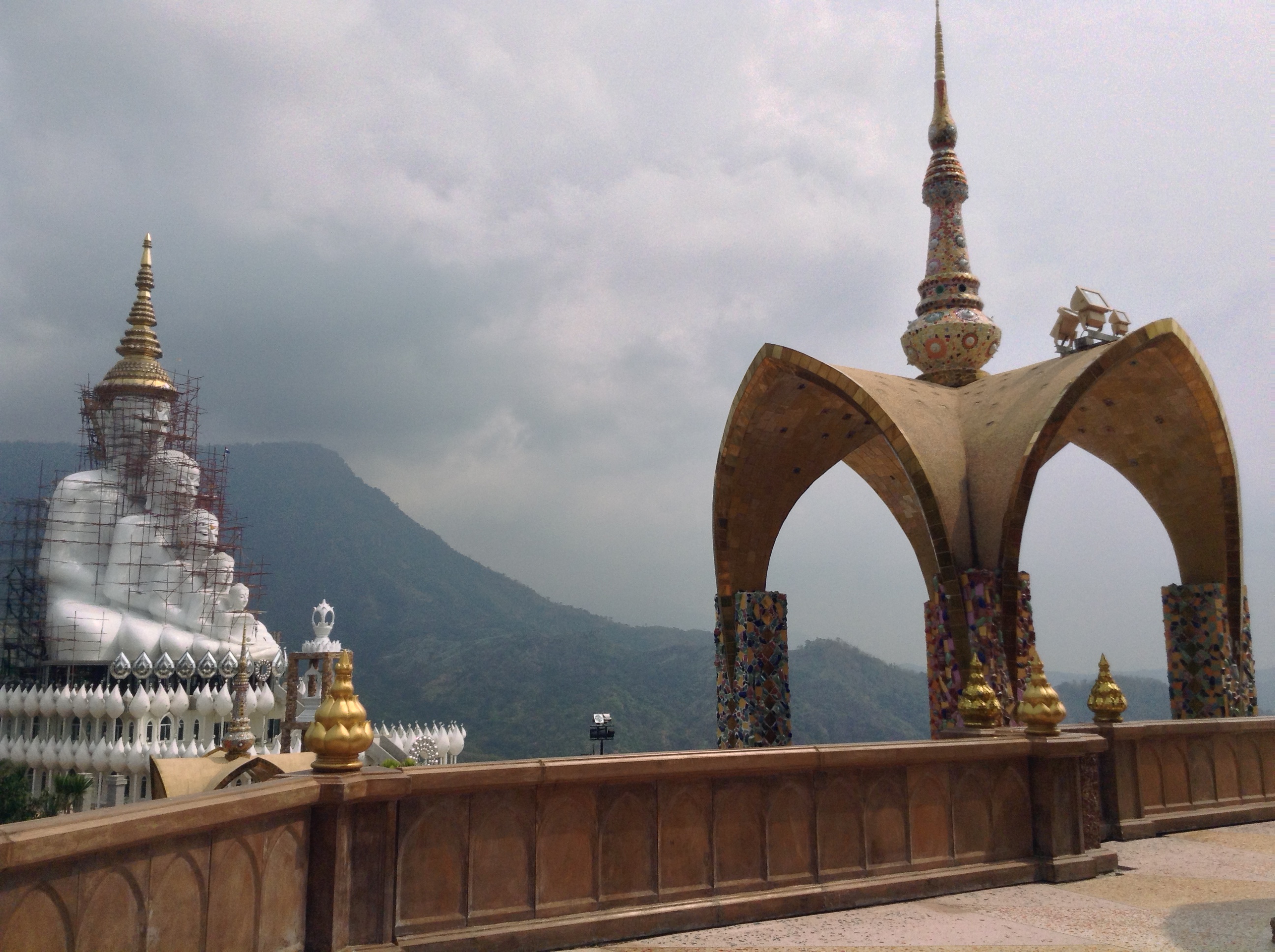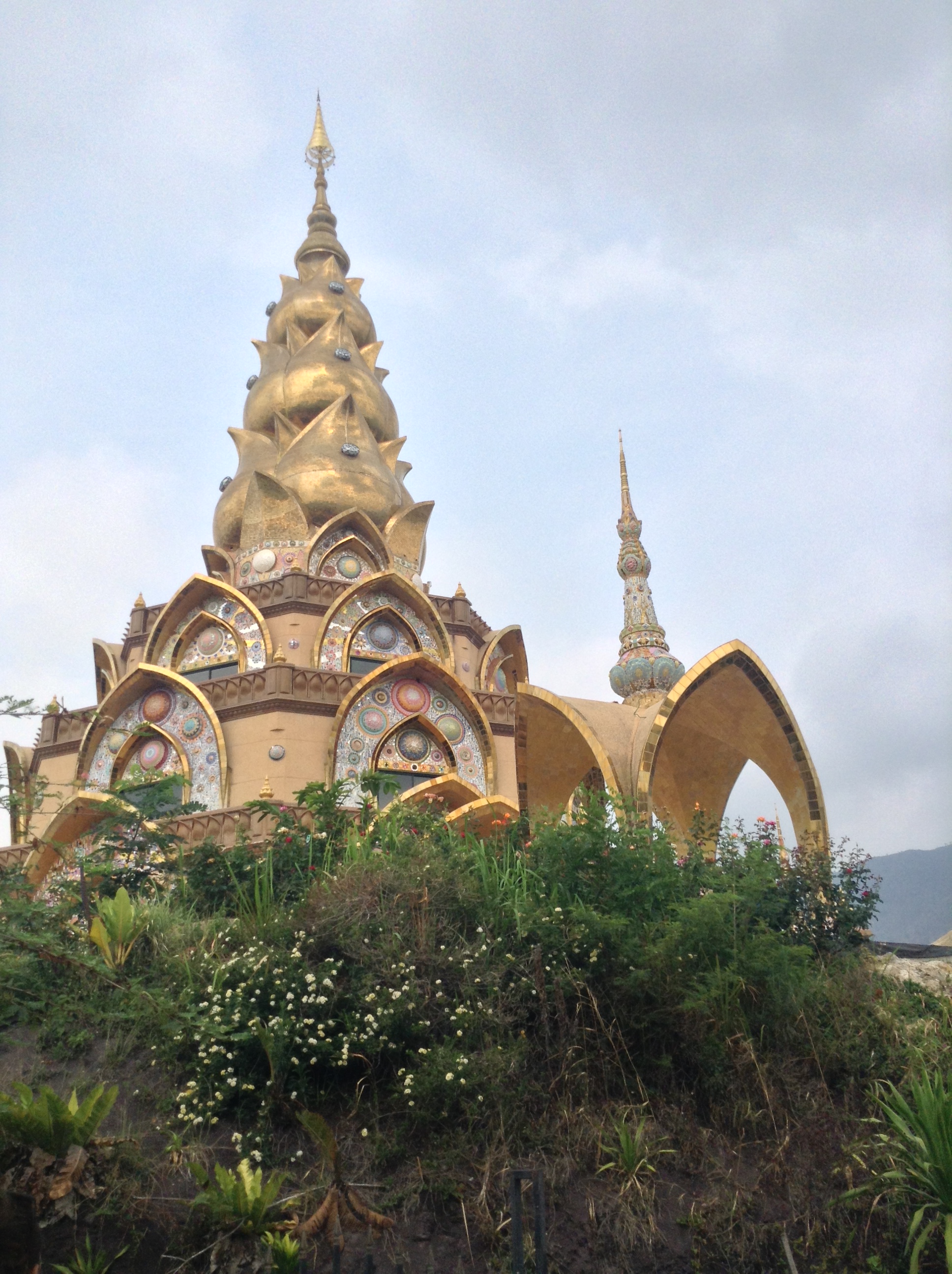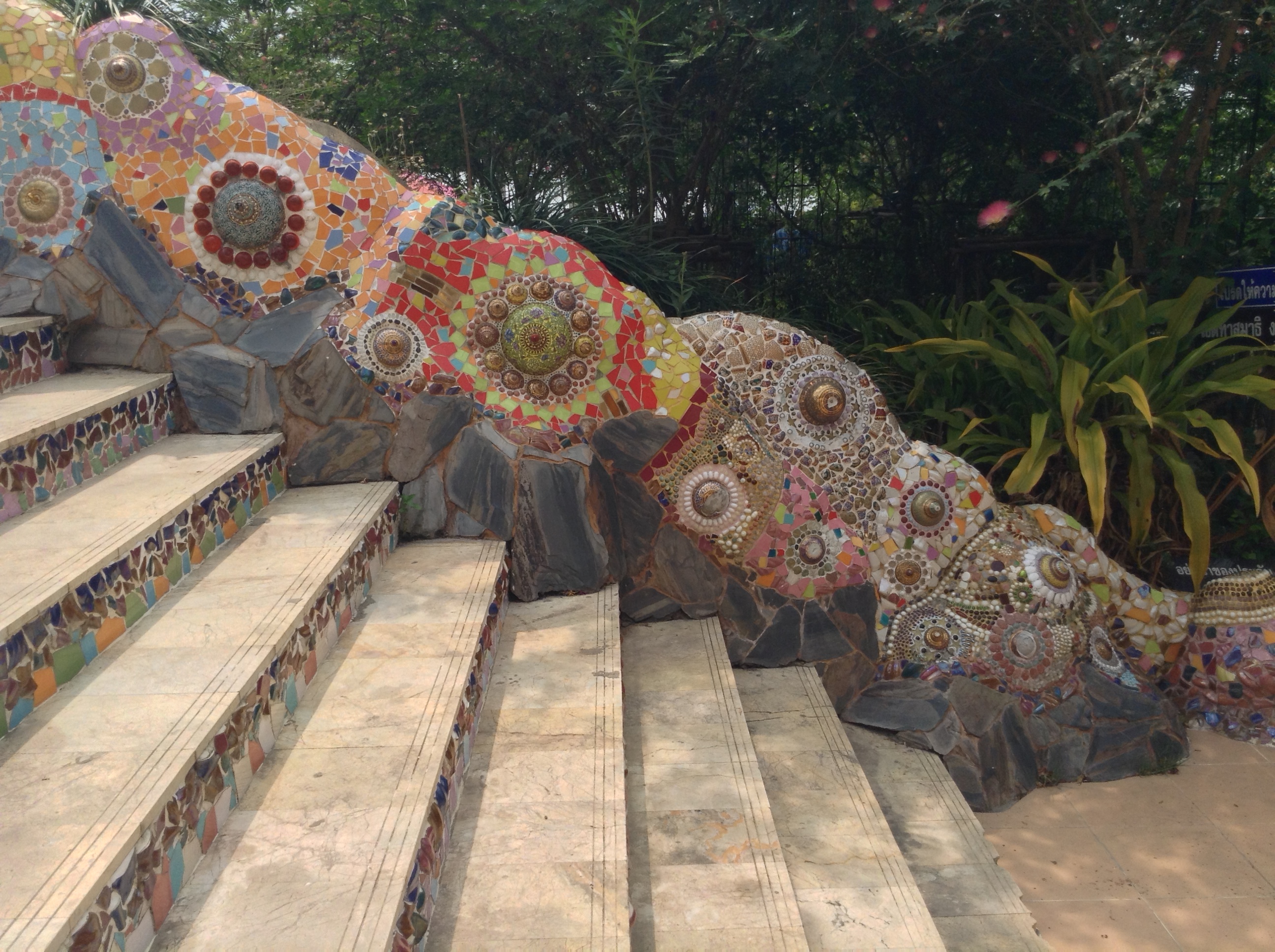 The next morning, two friends needed to return to their sites, so we all took them to the bus stop which happened to be a short drive from Wat Paa Son Gaeow. This wat is probably the most beautiful wat I have been to in my time here and I don’t think that there will be one that tops it. It’s located in a beautiful mountain setting, first of all. But then, it’s not a traditionally designed and decorated place – it’s covered in tiled mosaics. Any description I attempt to make won’t do it justice and the photos barely do. I could easily see myself doing a meditation retreat at this wat.