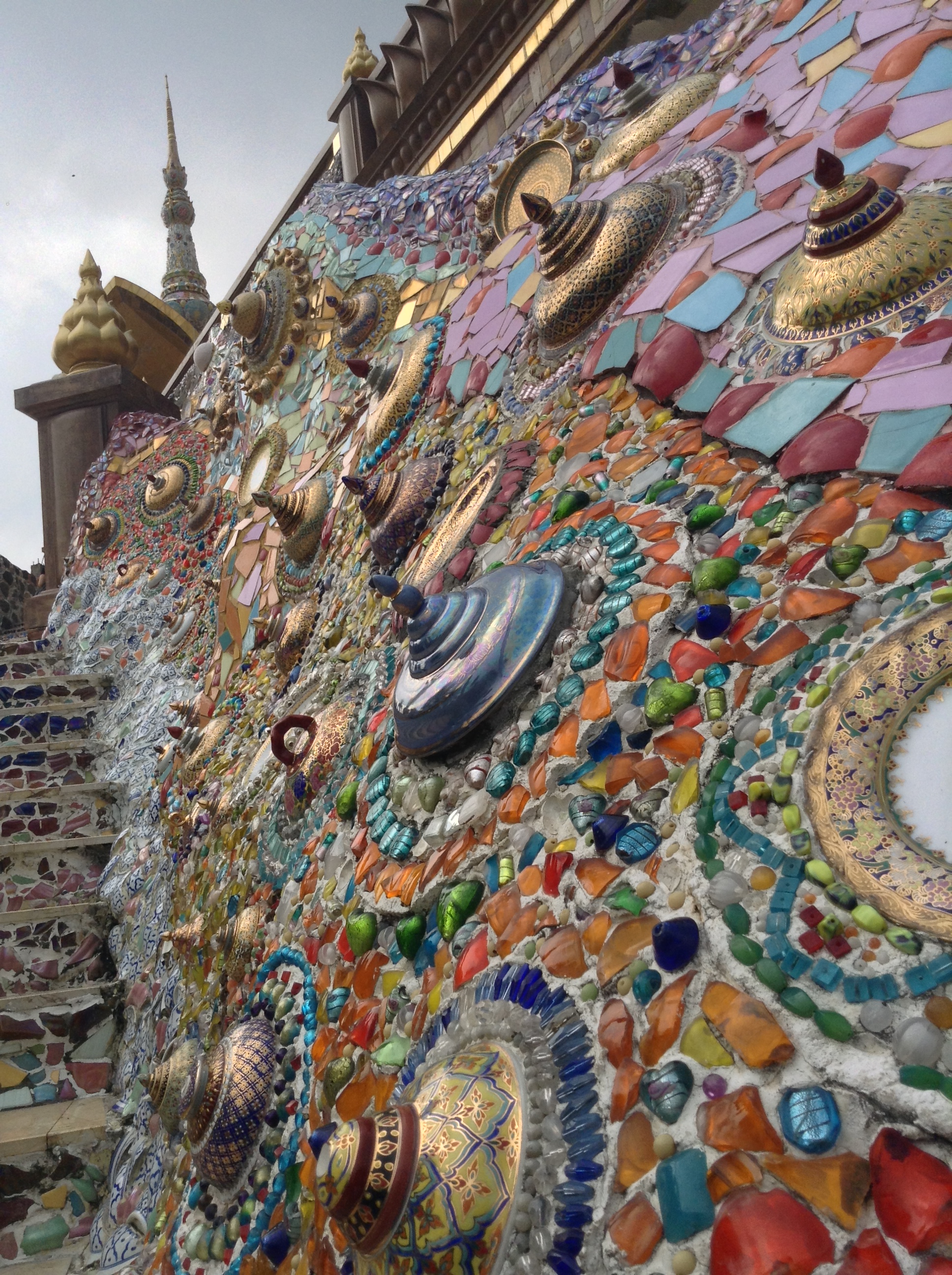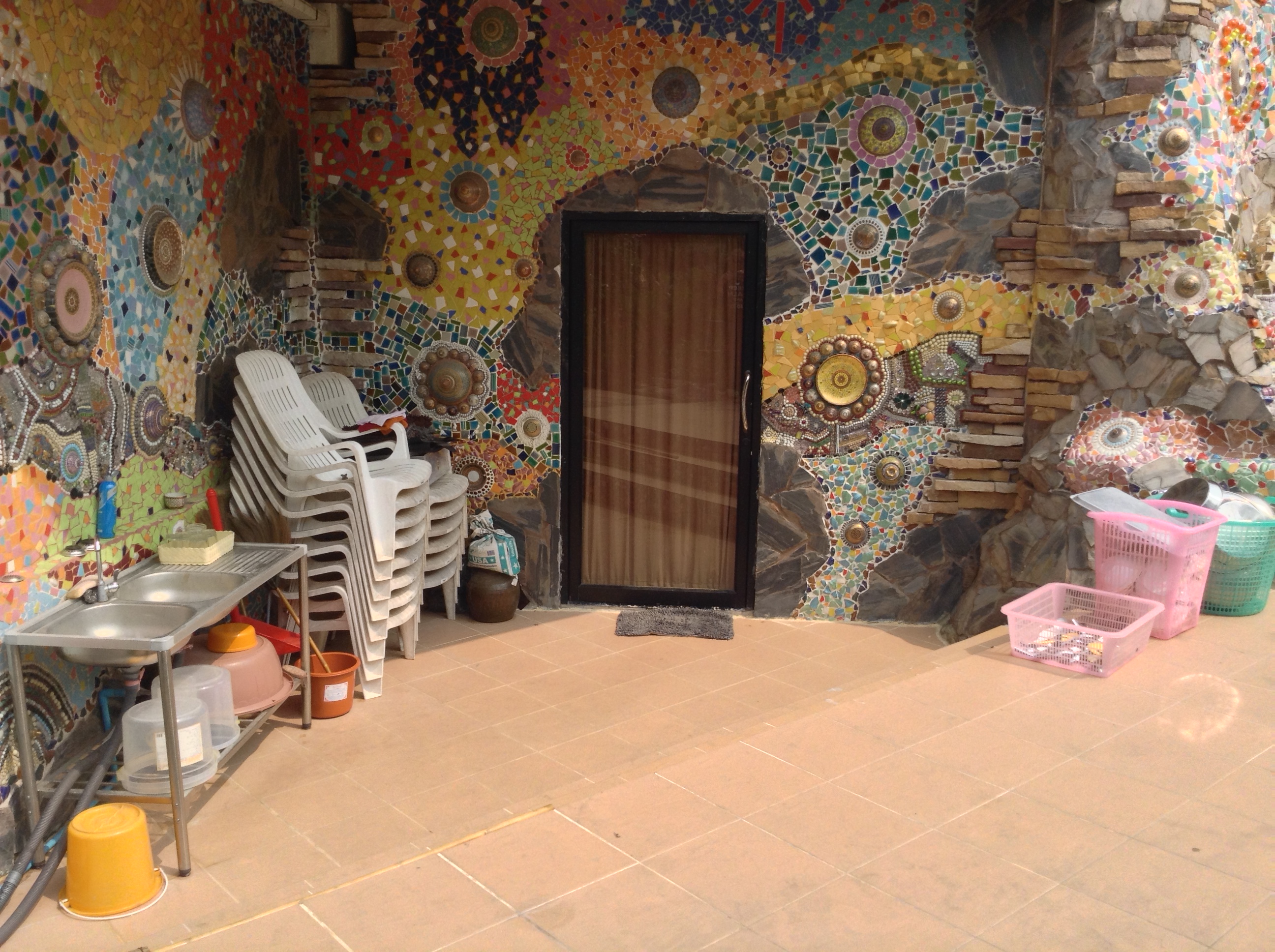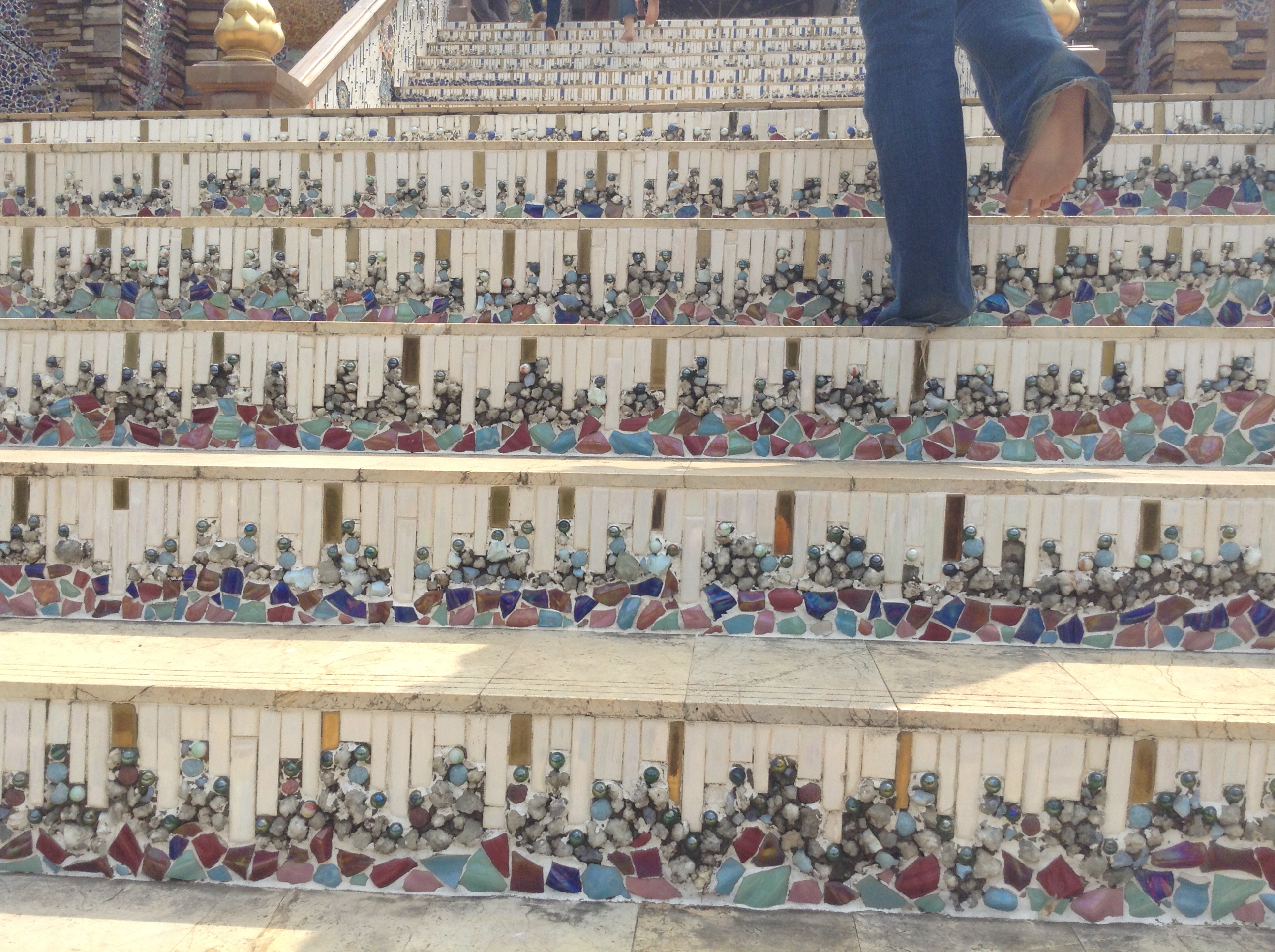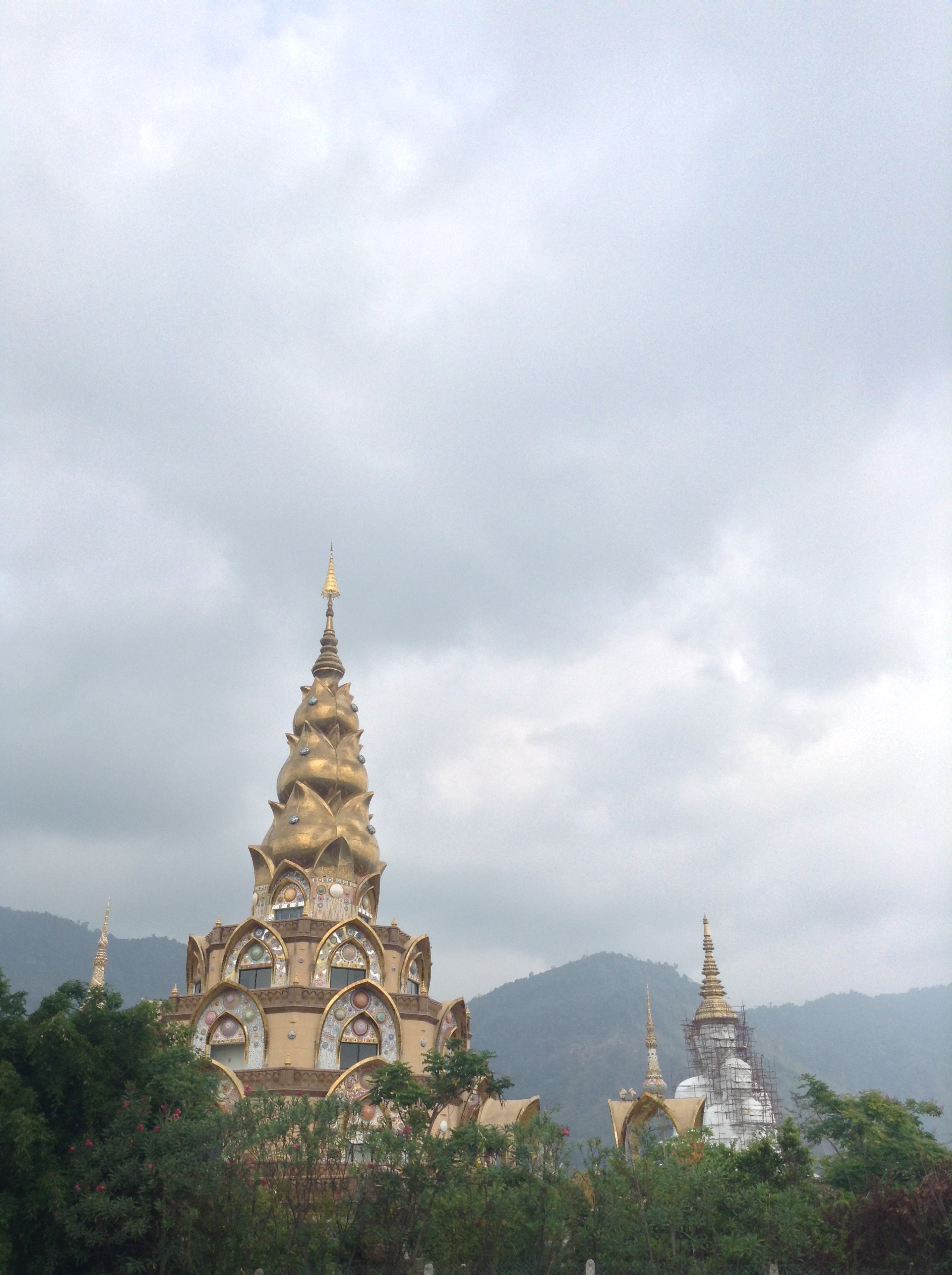 The next morning, two friends needed to return to their sites, so we all took them to the bus stop which happened to be a short drive from Wat Paa Son Gaeow. This wat is probably the most beautiful wat I have been to in my time here and I don’t think that there will be one that tops it. It’s located in a beautiful mountain setting, first of all. But then, it’s not a traditionally designed and decorated place – it’s covered in tiled mosaics. Any description I attempt to make won’t do it justice and the photos barely do. I could easily see myself doing a meditation retreat at this wat.