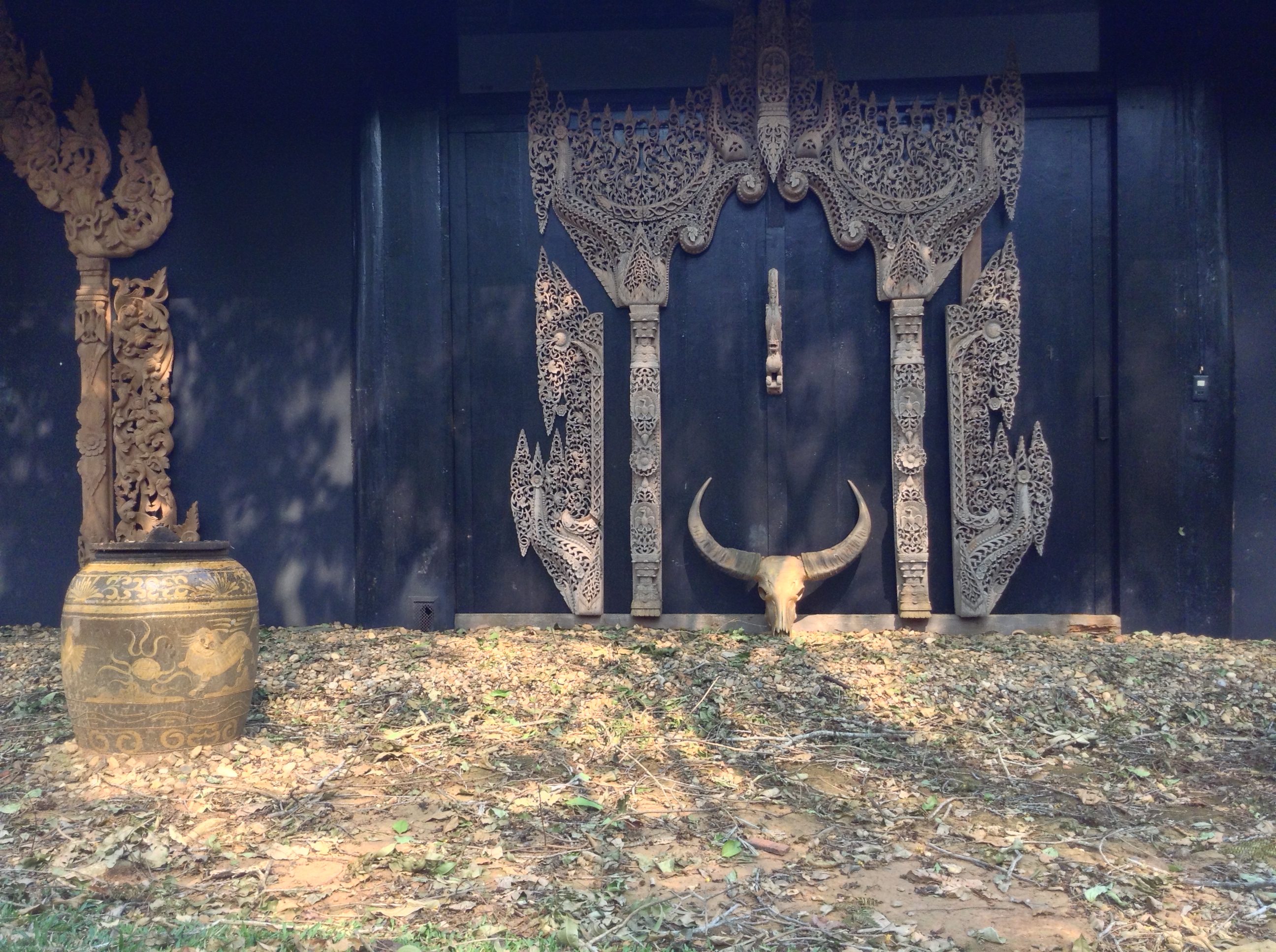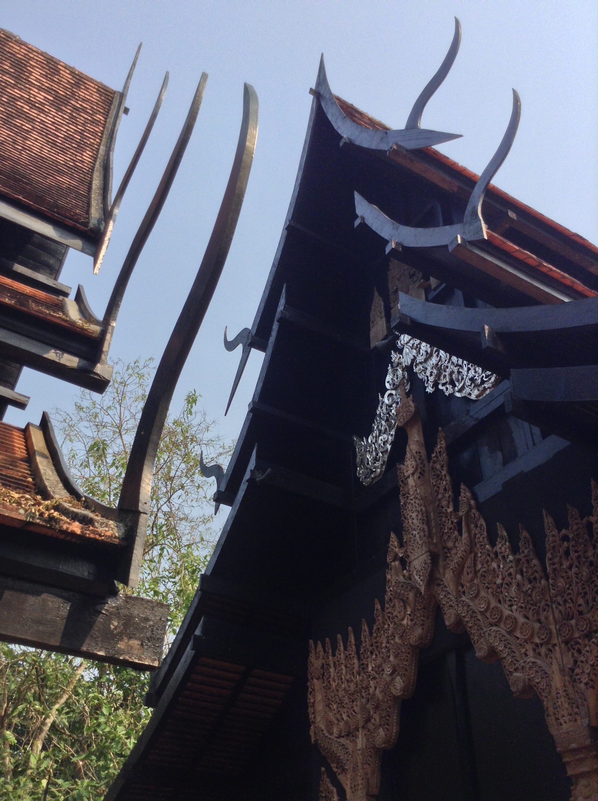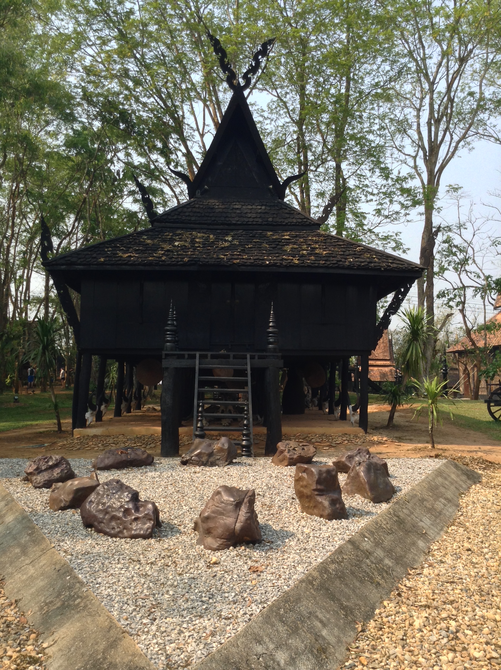 I also took a chance to explore some of the more modern examples of Thai art that are near Chiang Rai: Wat Rong Khun, also known as The White Temple, and Baan Dam, or the Black House. Designed and being constructed by two different artists, they are not related nor meant to be flip sides of a coin, though they are often interpreted that way. Both places have a very surreal feeling to them and evoke a variety of emotions as you explore them.