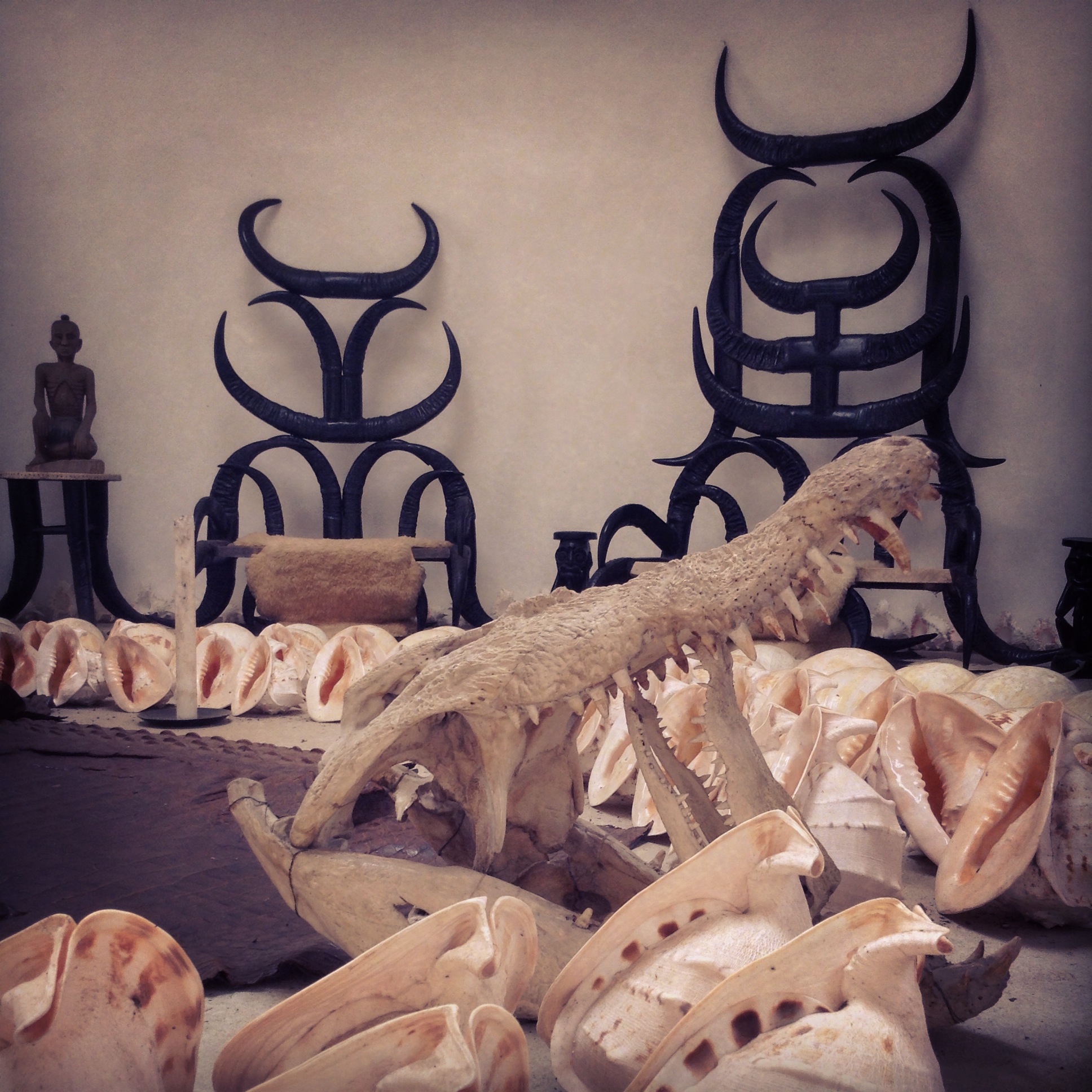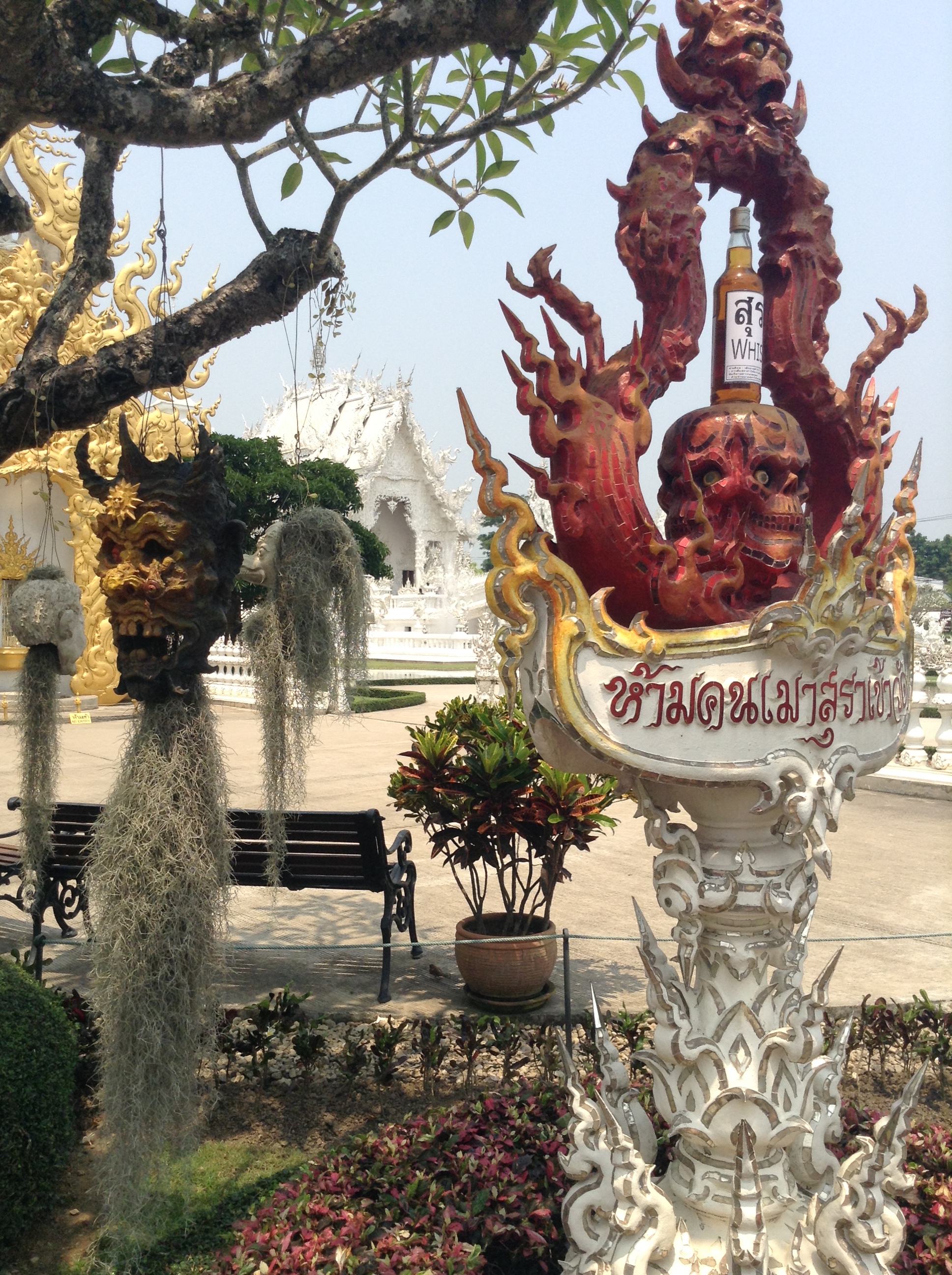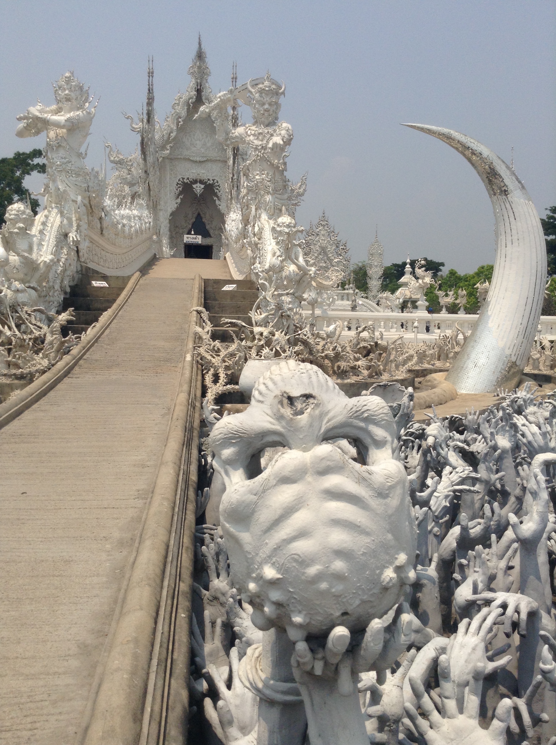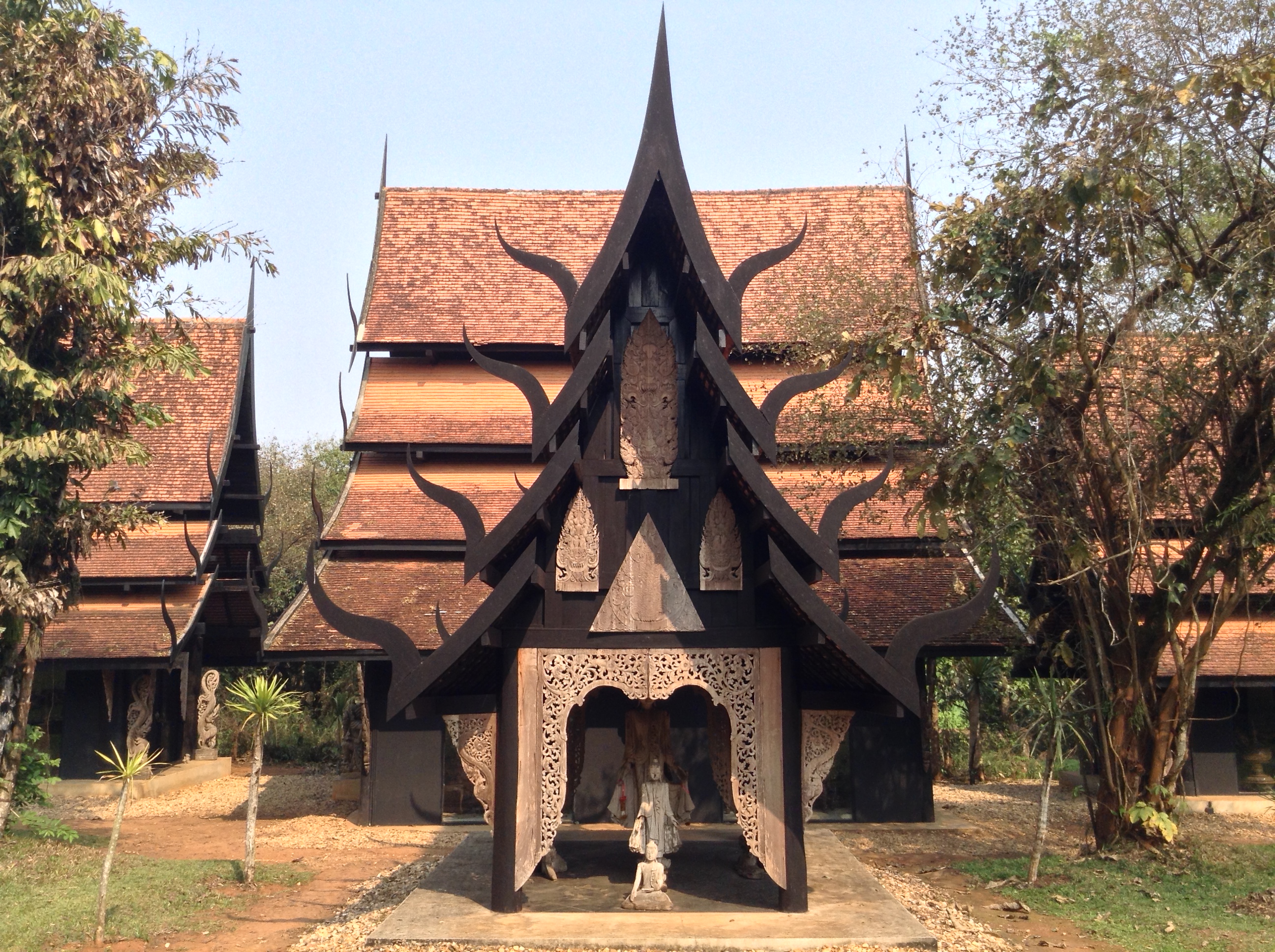 I also took a chance to explore some of the more modern examples of Thai art that are near Chiang Rai: Wat Rong Khun, also known as The White Temple, and Baan Dam, or the Black House. Designed and being constructed by two different artists, they are not related nor meant to be flip sides of a coin, though they are often interpreted that way. Both places have a very surreal feeling to them and evoke a variety of emotions as you explore them.