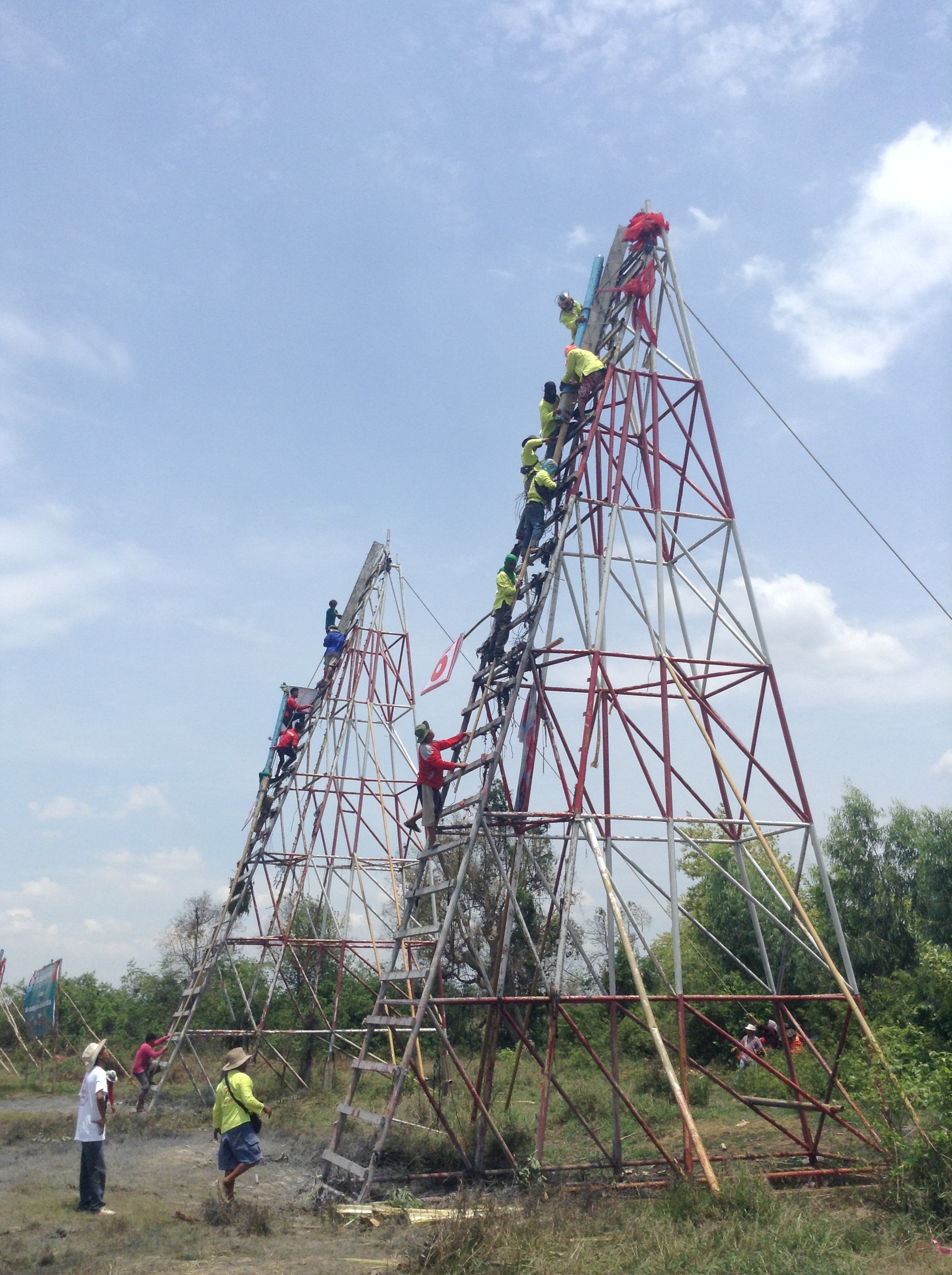 Stories for the firing of the rockets vary, most popular being that the rockets will bring good rains during the rainy season. But perhaps more accurately, the tradition has roots in a Buddhist tale, in which the Buddha was giving a sermon that drew away the worshipers of the Sky God. As revenge, the Sky God withheld rains for seven year, seven months and seven days. The Toad King then lead a war against the Sky God and with the help of the Naga defeated him and the Sky God had to agree to never withhold rain again. The rockets are sent up yearly as a reminder to the Sky God of his agreement and the possible consequences of his reneging on this agreement.