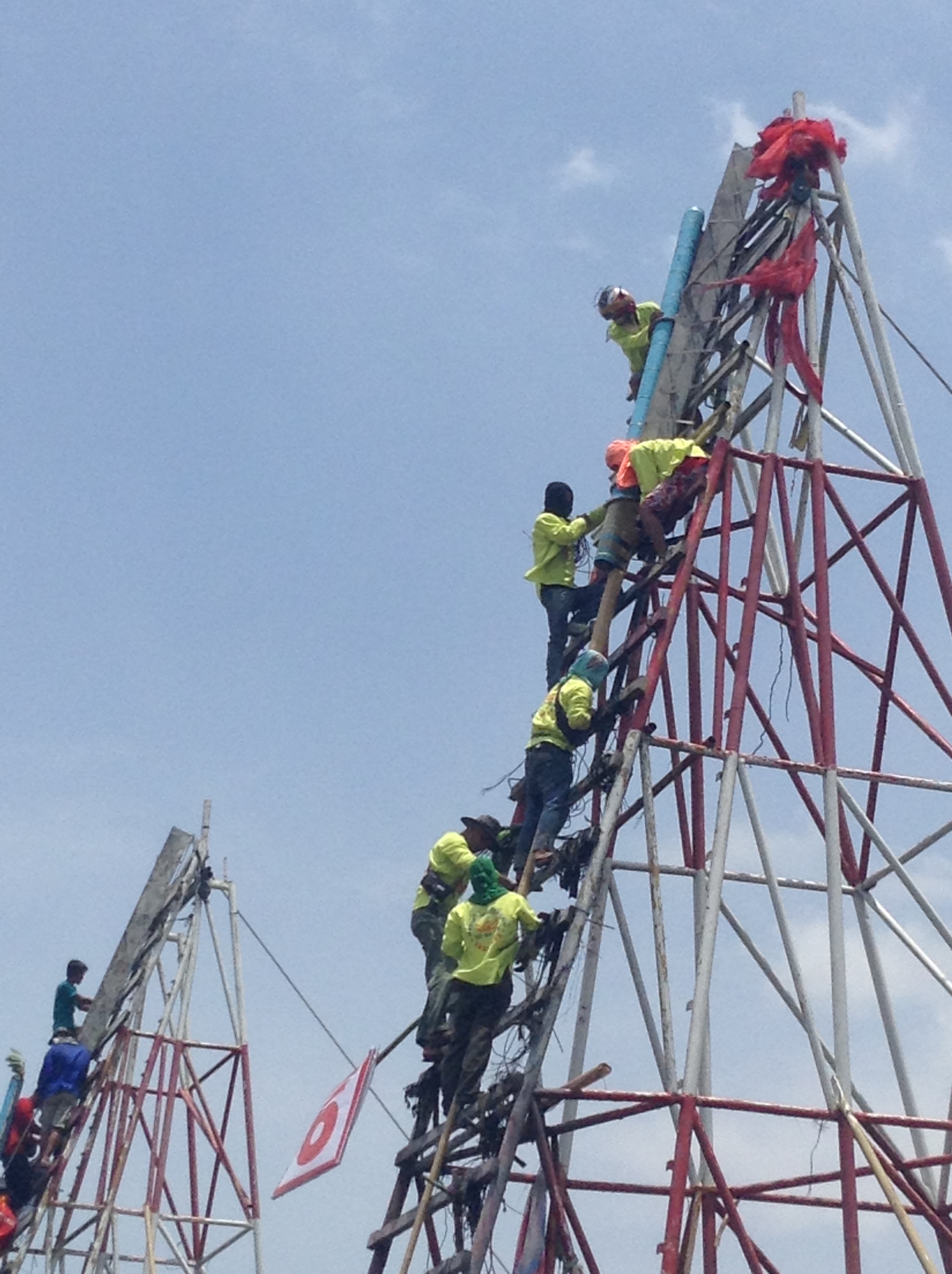 I got to Yaso after the big parade on Saturday, which includes traditional dancing in a parade along with elaborately decorated rockets on floats, which I was a little disappointed to have missed this part. However, the party was still raging on numerous stages that lined the main drag in town. After wandering around, taking it all in as most groups began to strike their sets, I was pulled up on stage to dance with a group of women who were all having a very good time. I indulged them for a few songs before excusing myself and figuring out where and when the festivities would be taking place the next day so as not to miss them: 8 a.m. at the municipal park just outside of town.