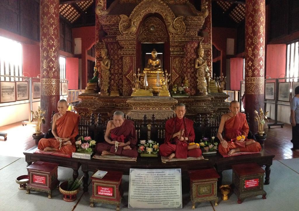 Our hotel was right around the corner from the first stop: Wat Phra Singh. This was my parents’ first experience at a Buddhist temple in Thailand, so I explained as much as I could about the buildings and the images that were there.
