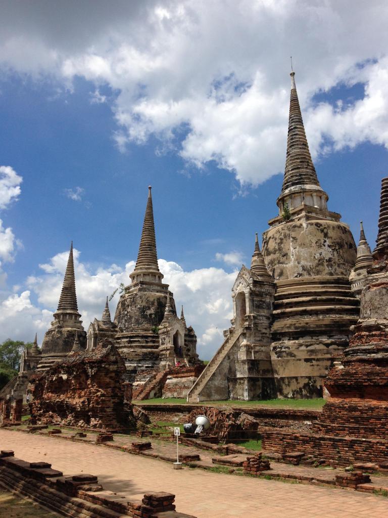 We changed our plans from going to my village to instead stay in Bangkok and see the sights there and do a day trip to the old capital, Ayutthaya, to bike around the ruins.