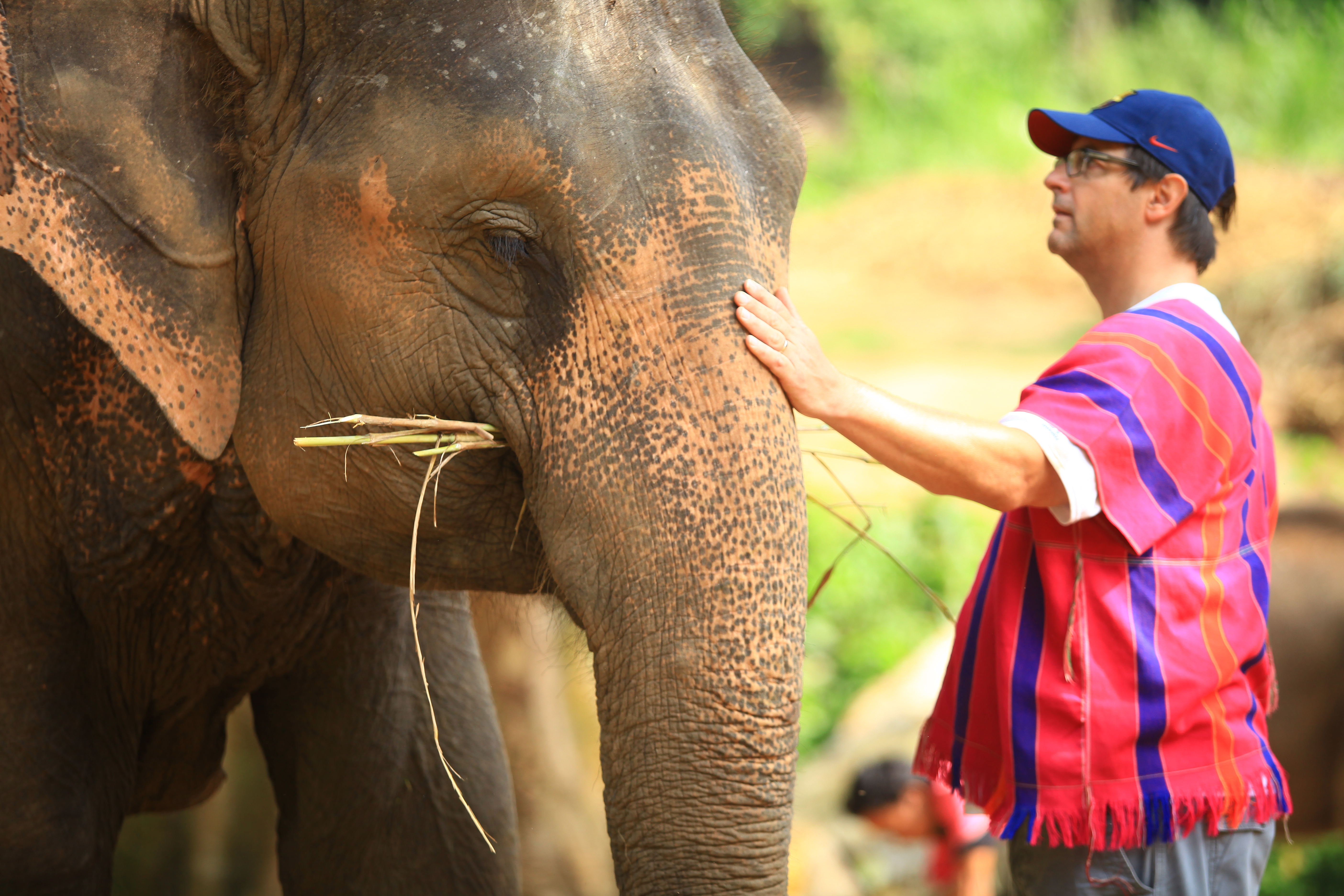 In the morning, we got an introduction to the farm’s philosophy and founding and got to interact briefly with a small group of elephants, before we were assigned an elephant to take care of for the day.