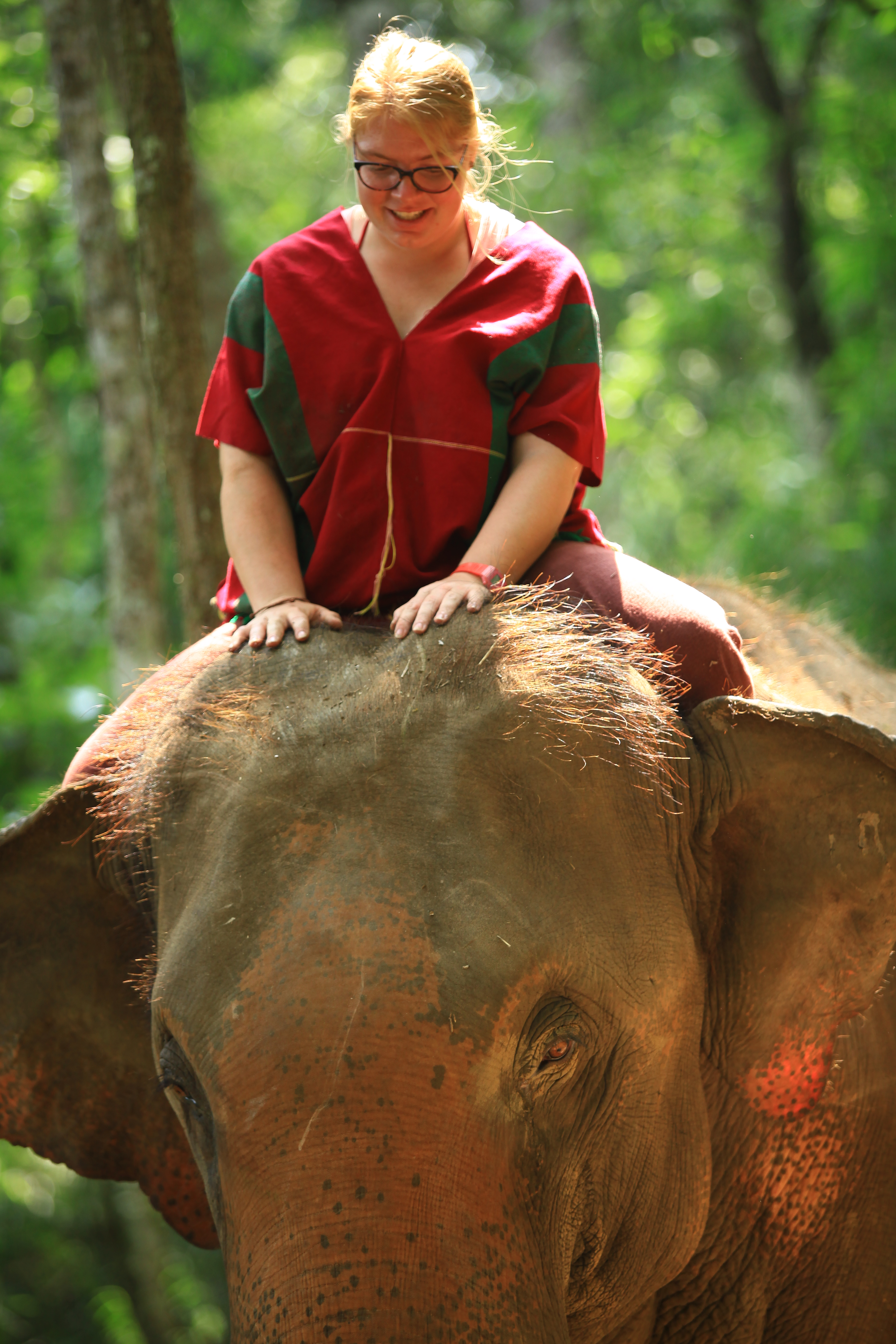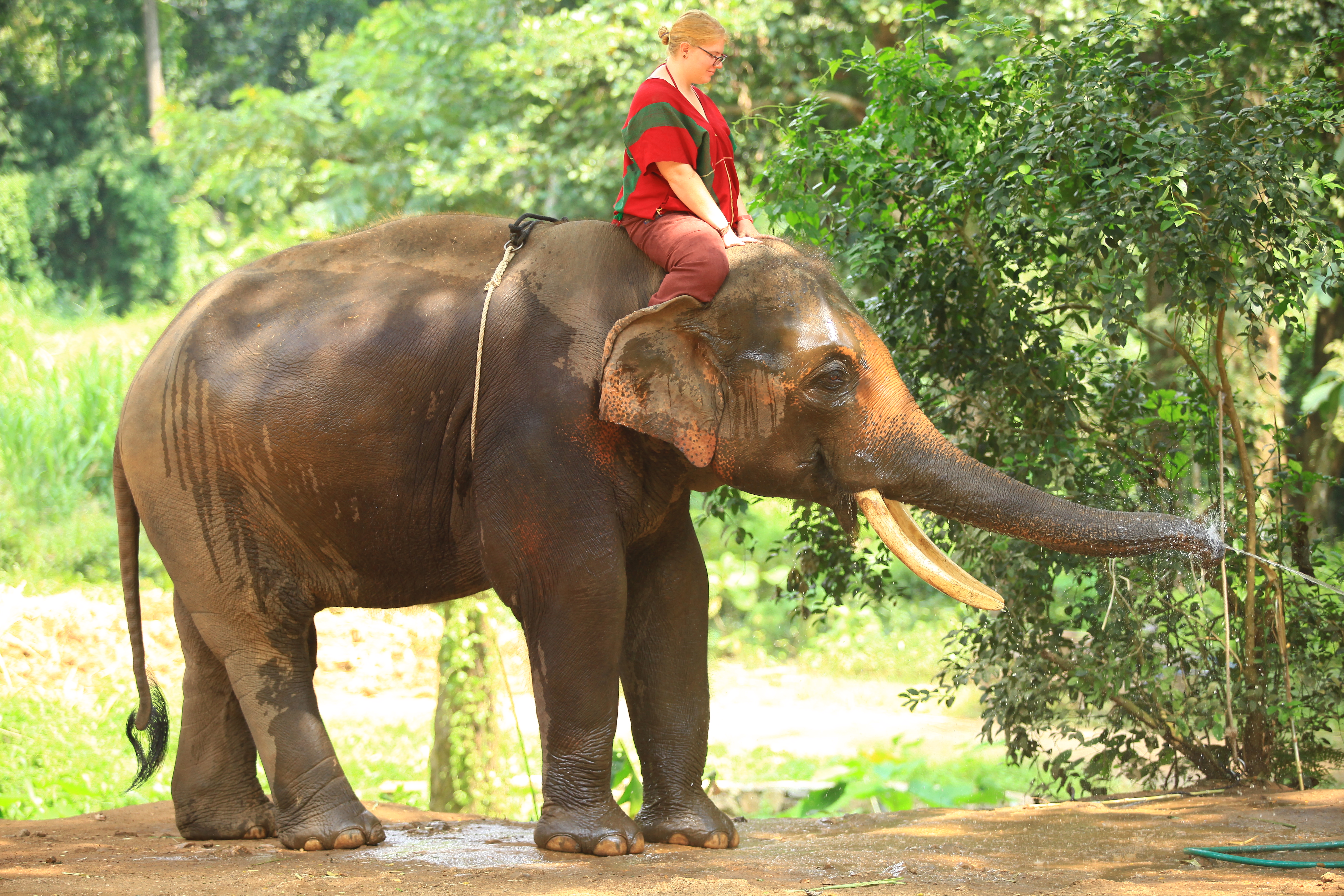 We were instructed on how to check their health and well-being, fed them and then rode them bareback for about an hour to a waterfall where we scrubbed and bathed them. Afterwards, we went to their nursery area where the recently born baby elephants and their moms stay. It was an amazing day to say the least.