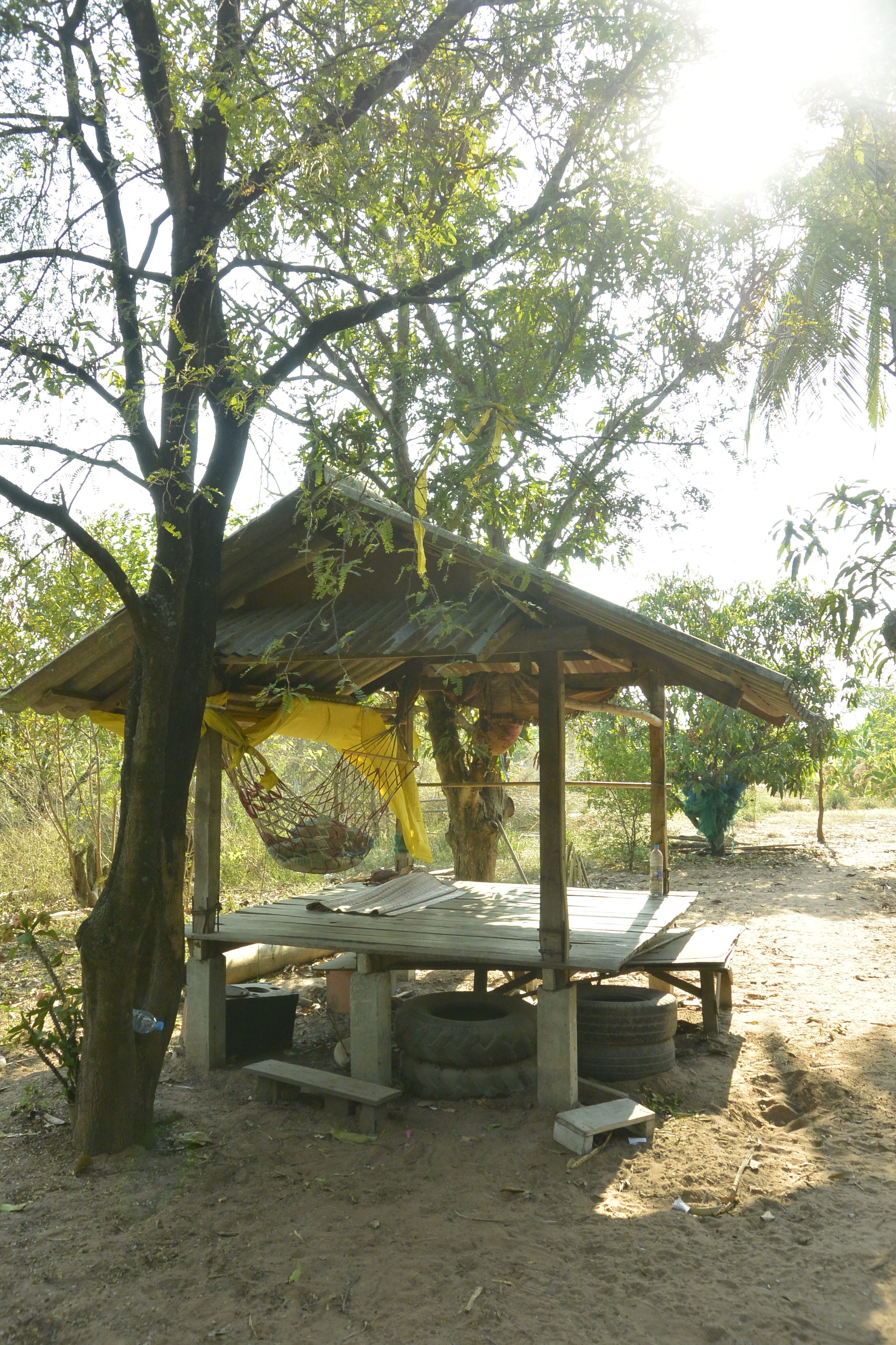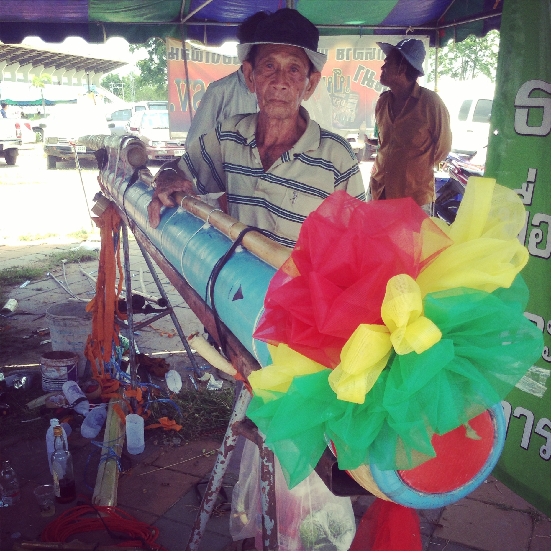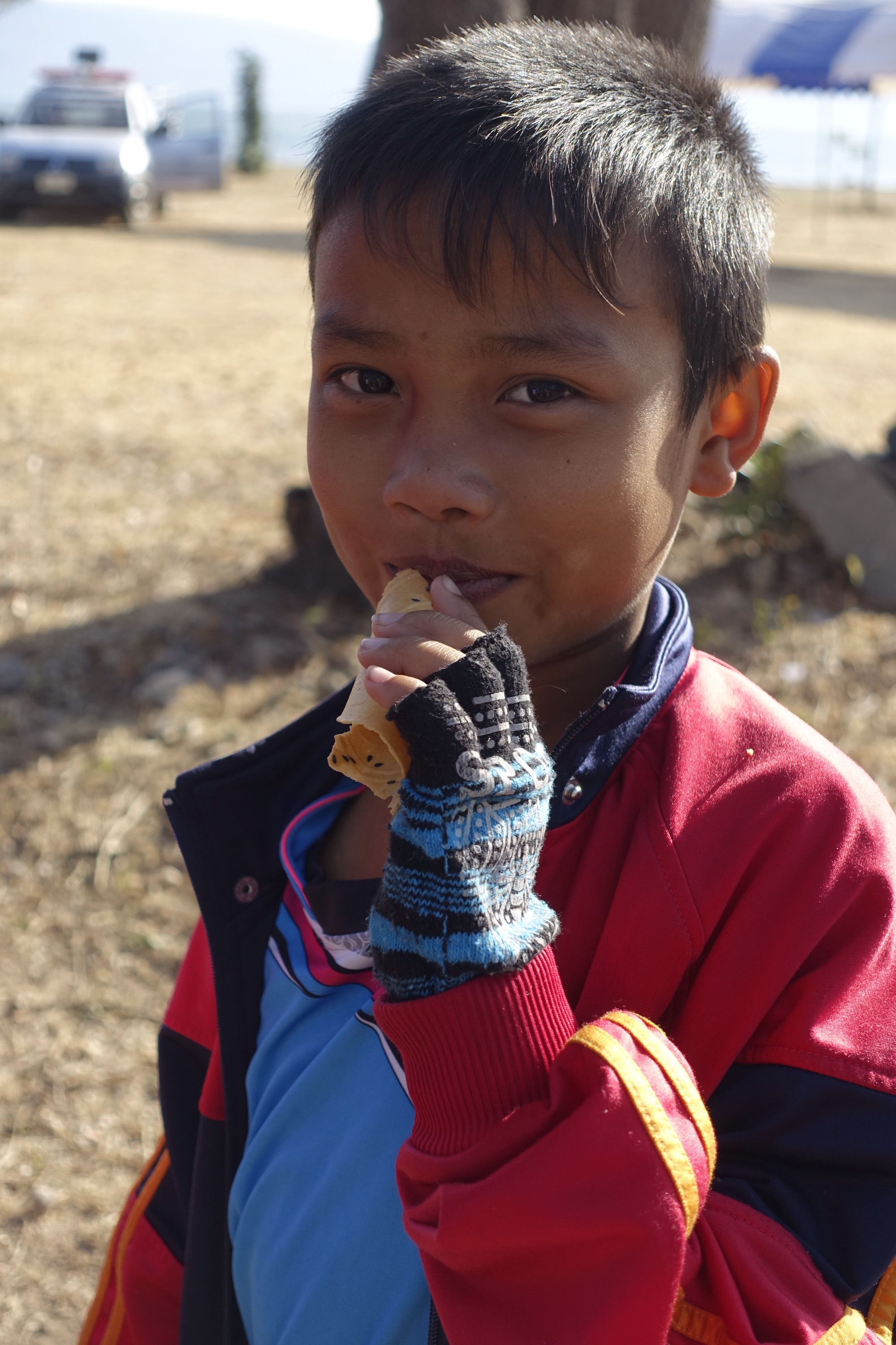 Eating sticky rice and nam prik in the parking lot.
