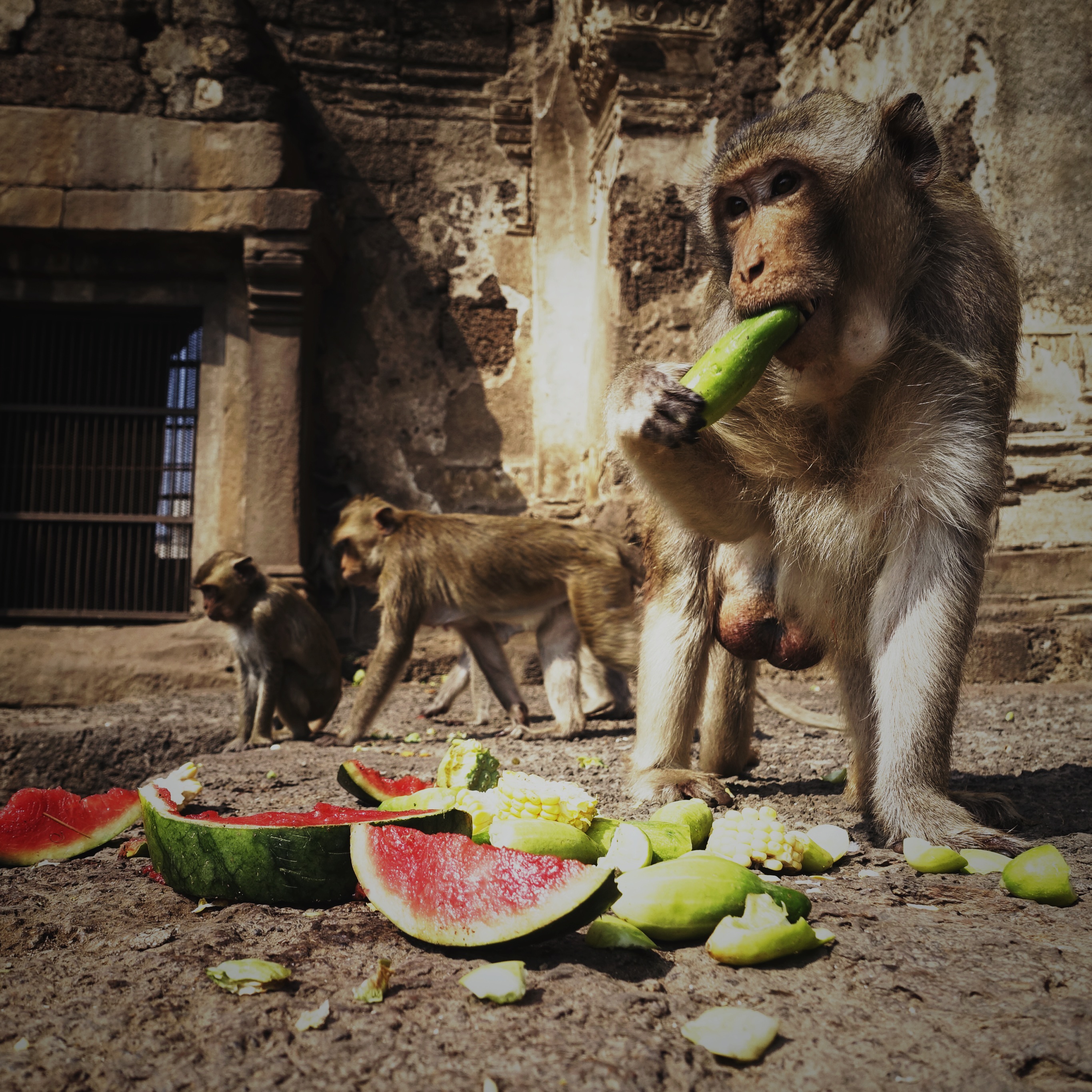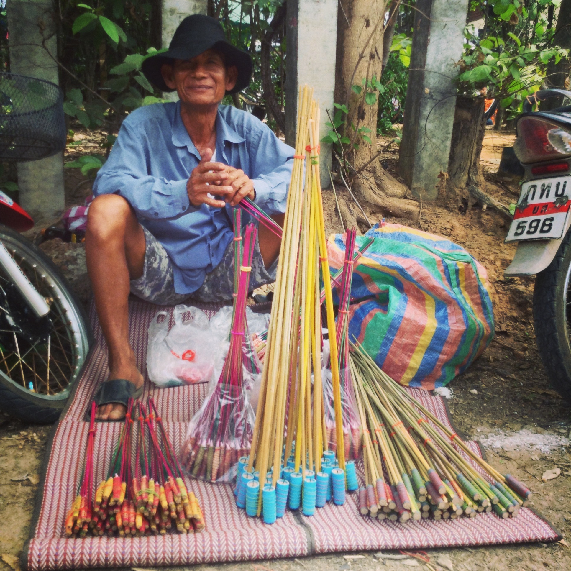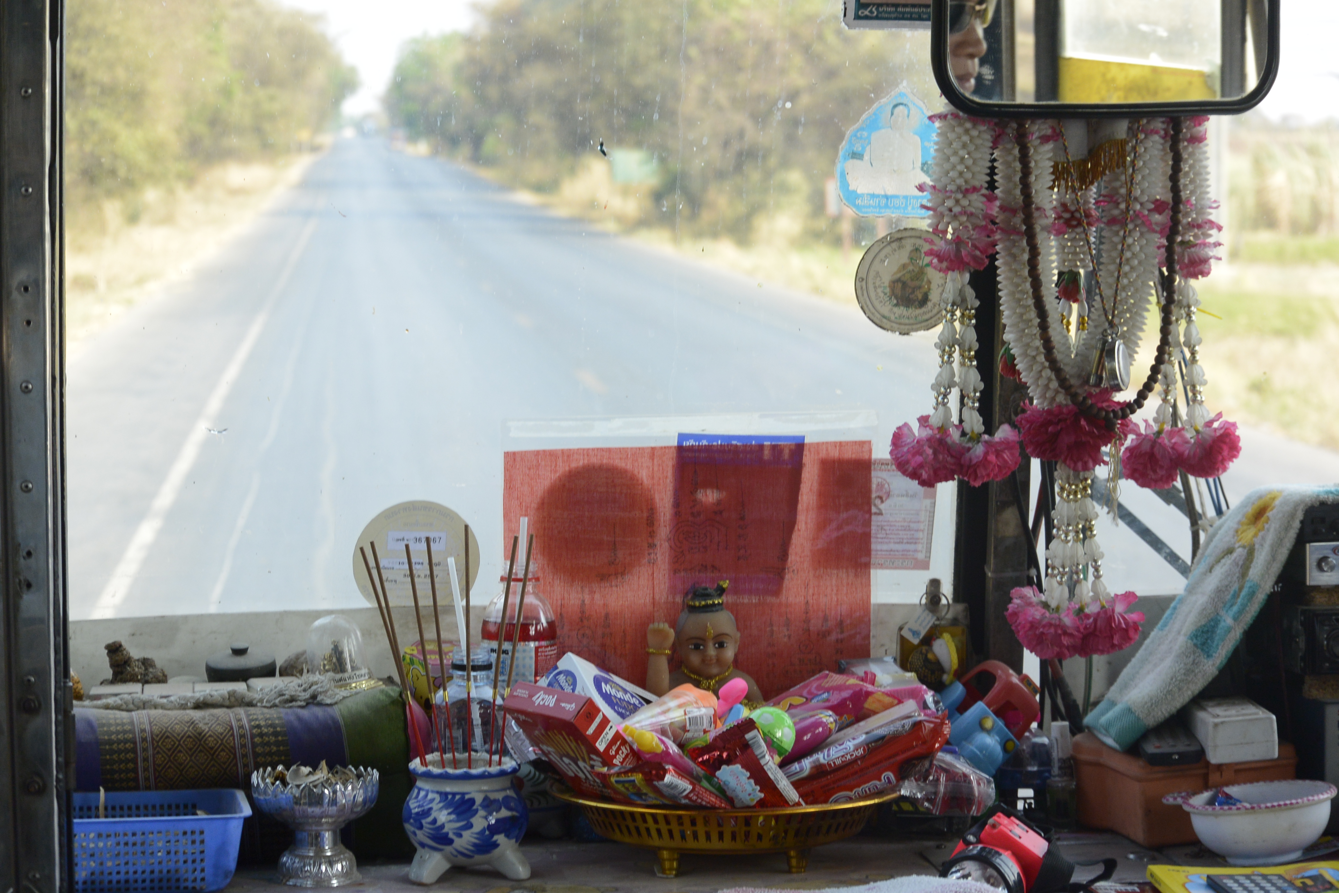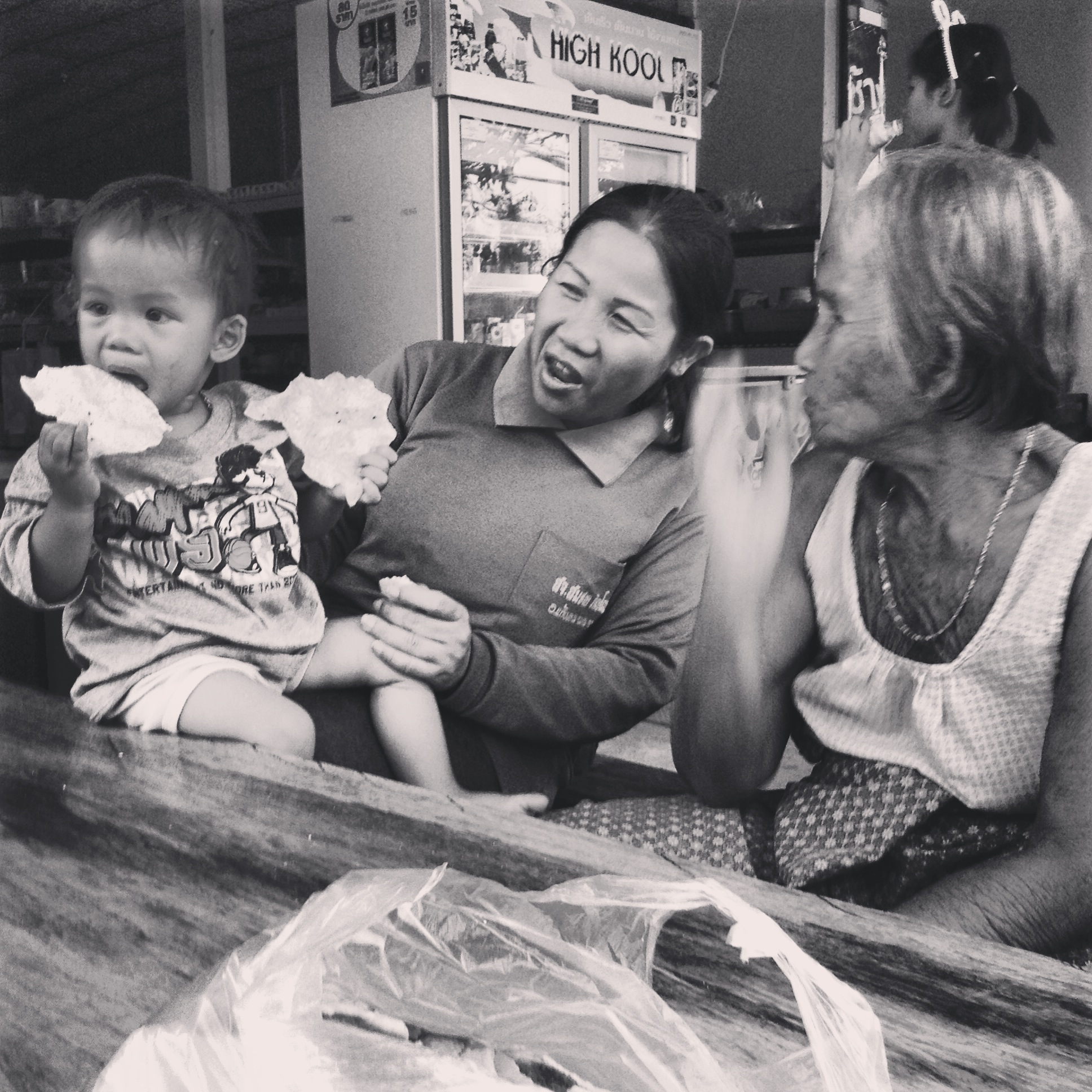 Eating sticky rice and nam prik in the parking lot.