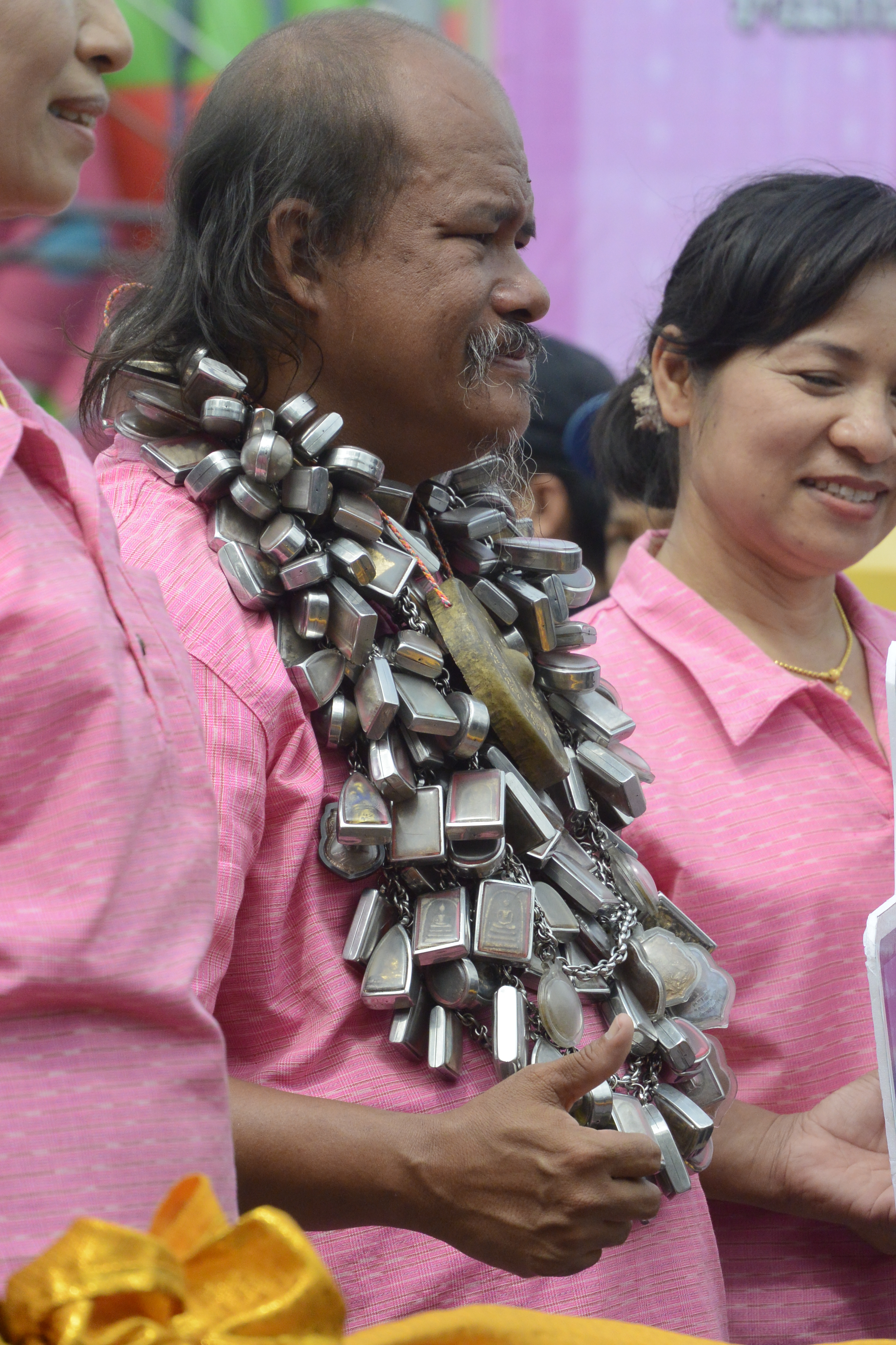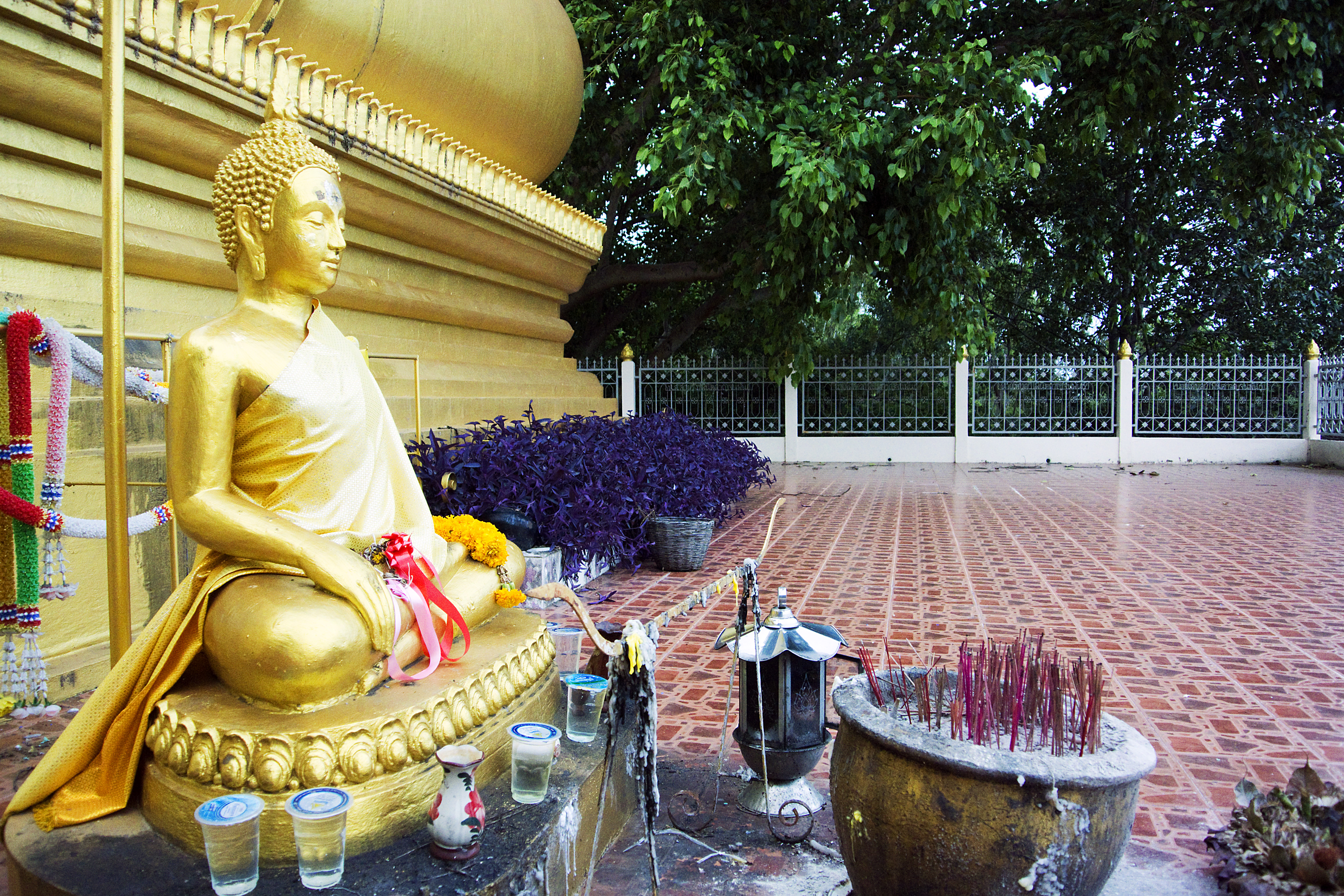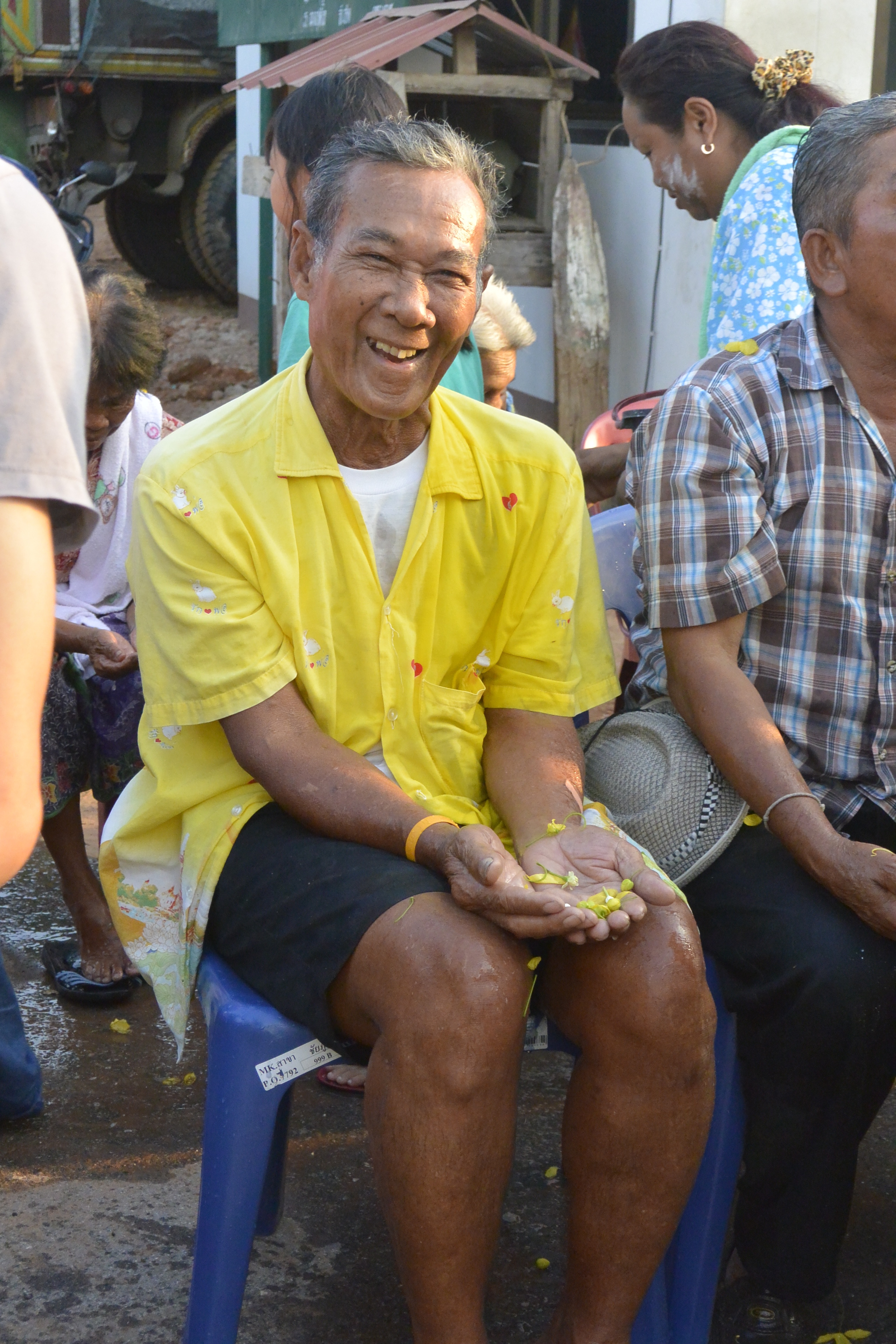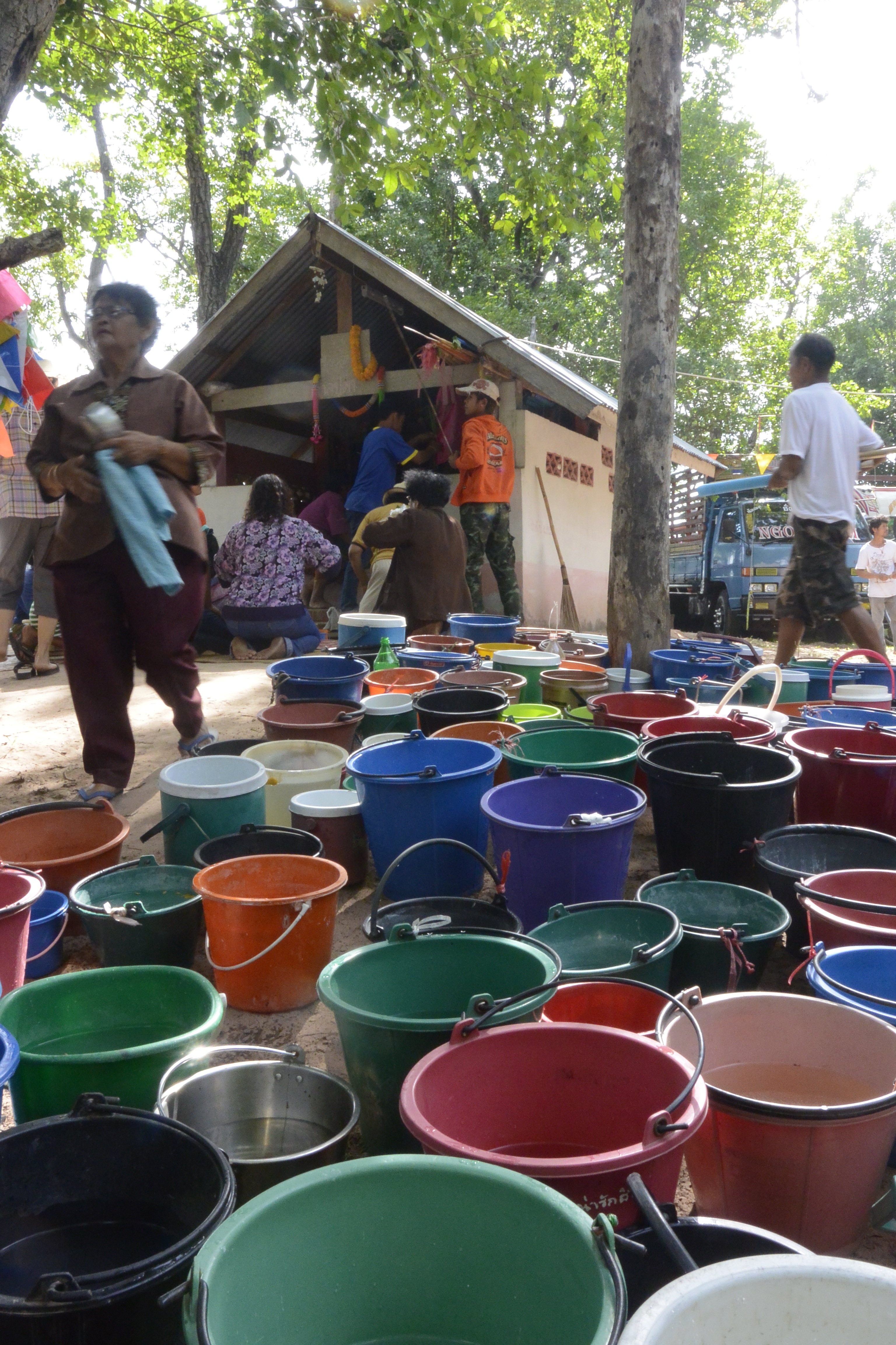 Everyone brought some water to wash the spirit house.