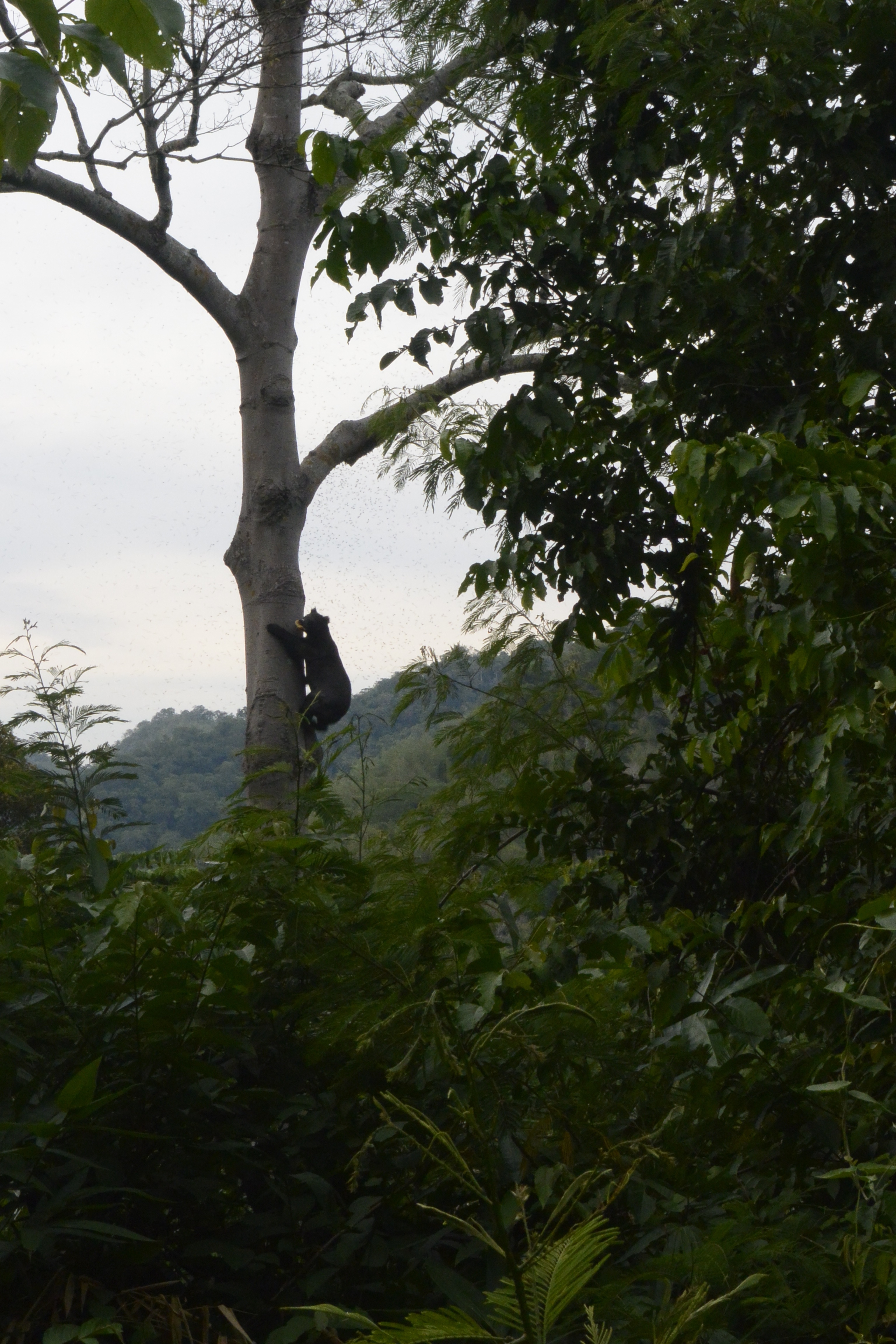 Sun Bear climbing down after getting its honey.