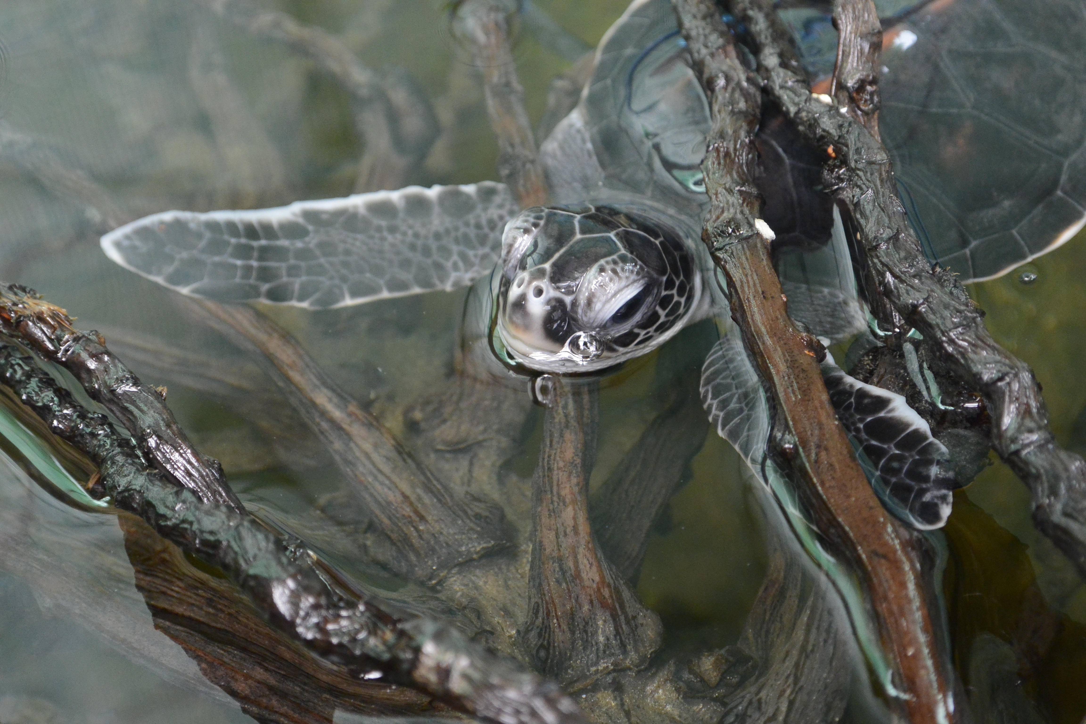 Baby green sea turtle, about six months old.