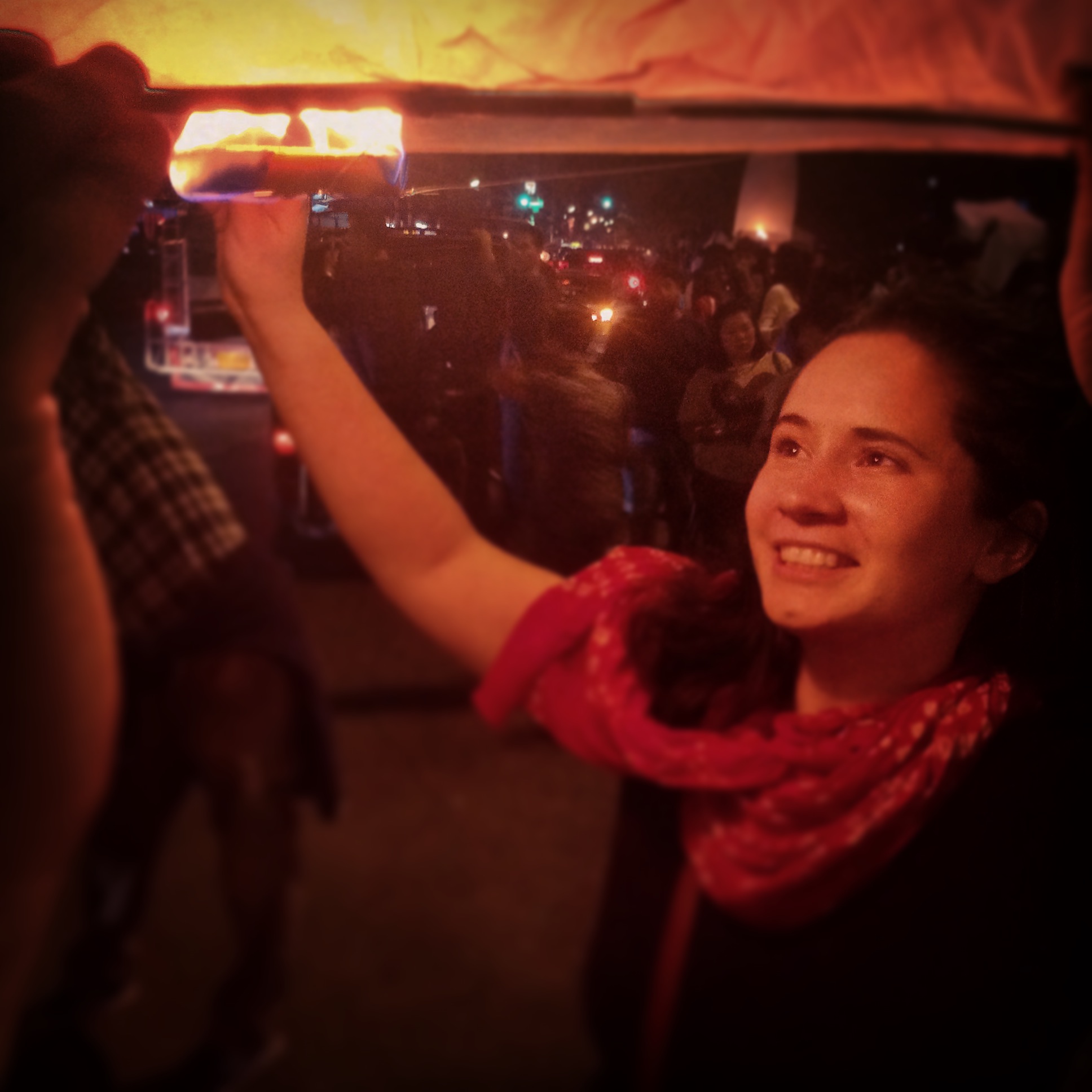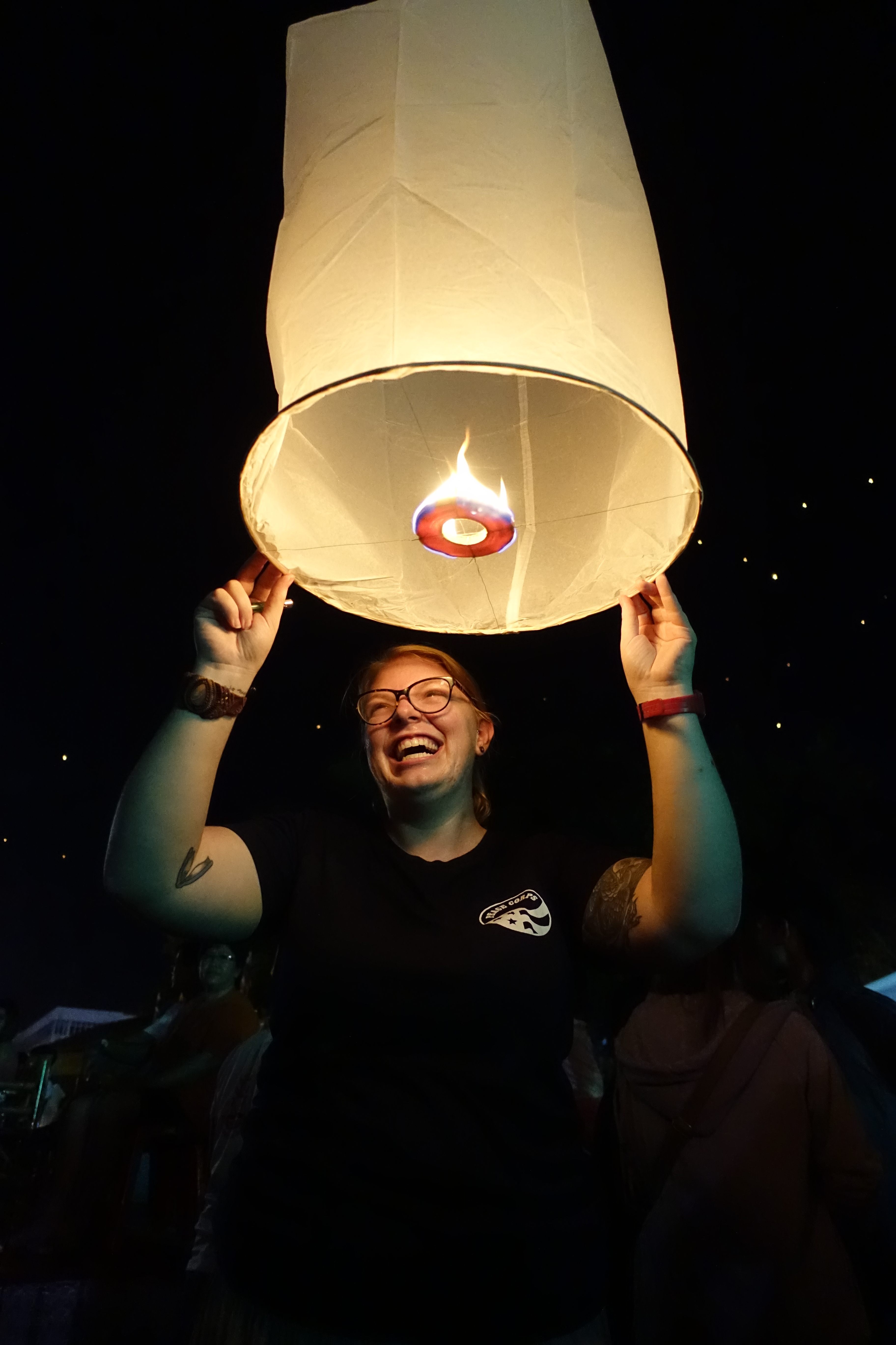 Grace setting off a floating lantern, filled with wishes for the new year.