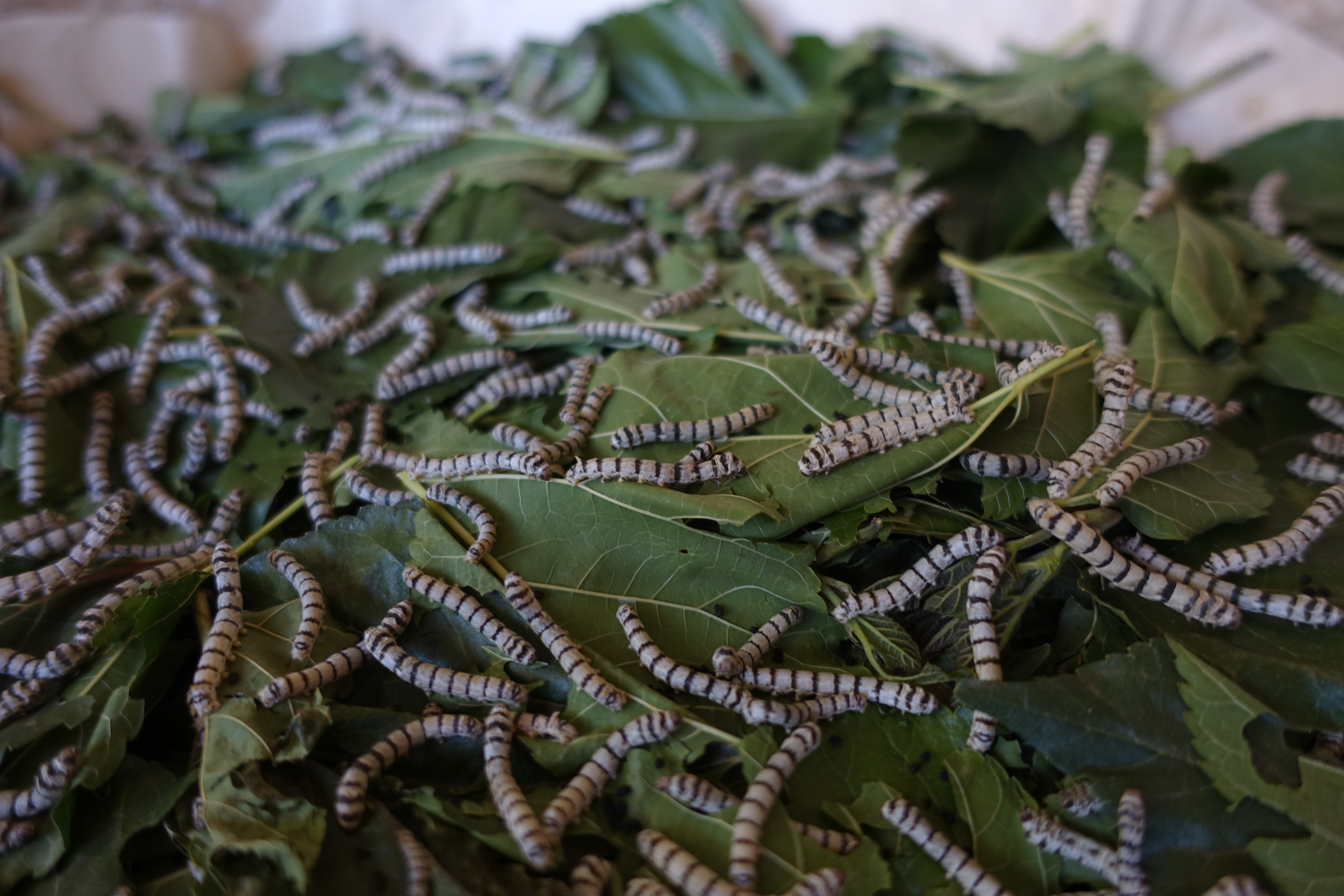 Thai silkworms exclusively eat mulberry leaves.