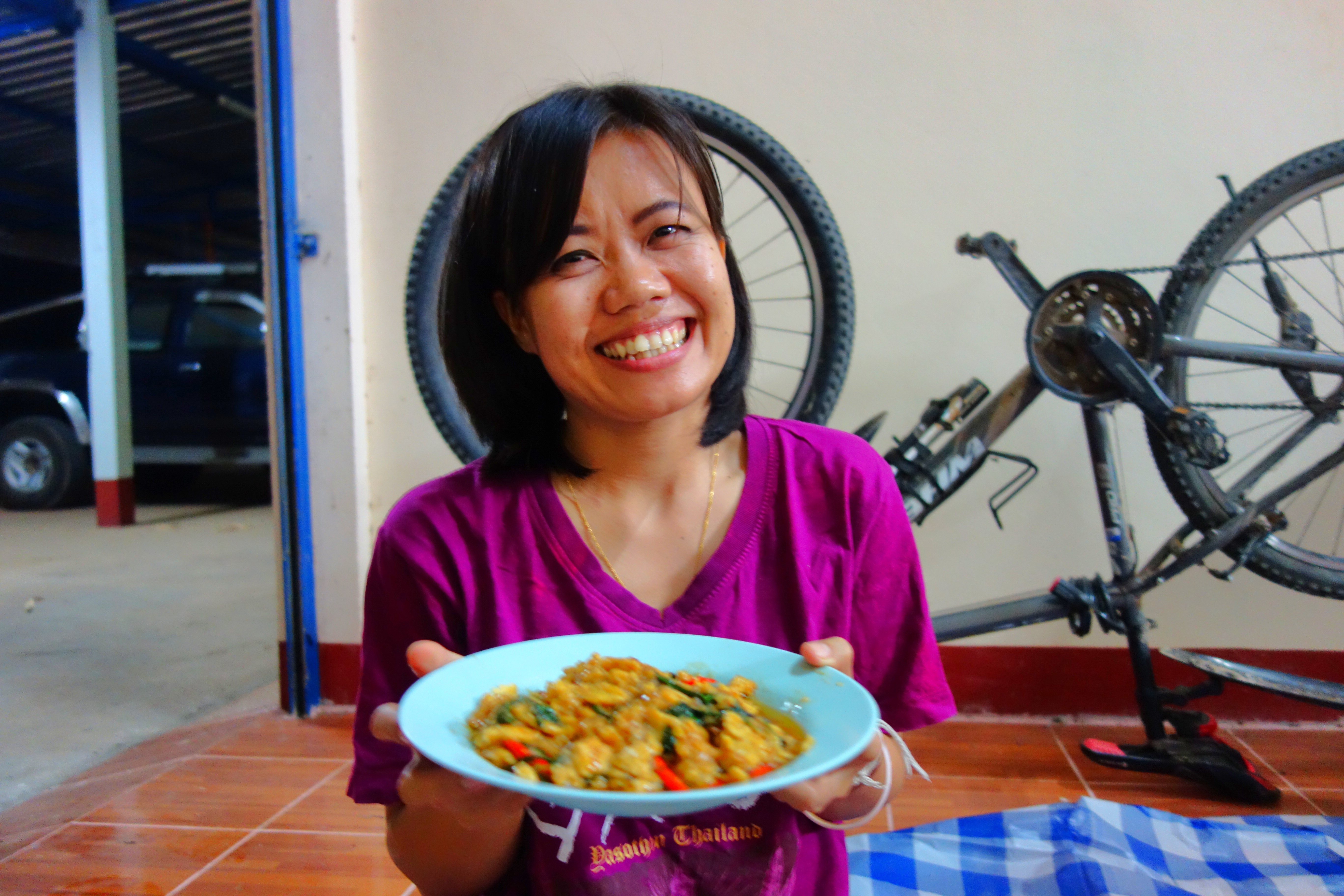 My co-teacher, Ning, with pad ga-prao kai, or stir friend basil with egg, that she made for me. Photo: Keith May spongeandslate.com