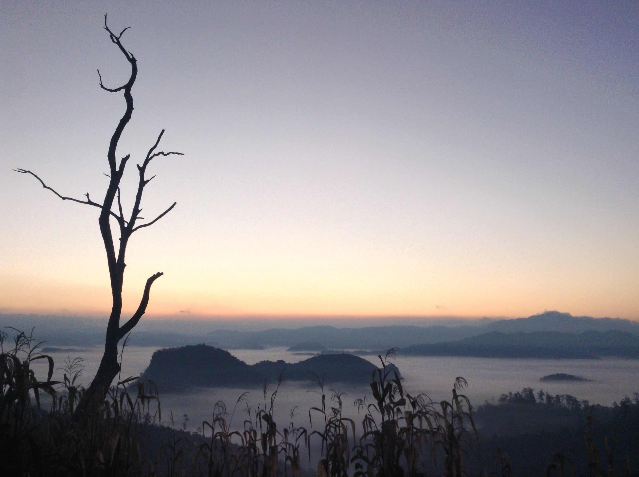 Sunset over tent bed
