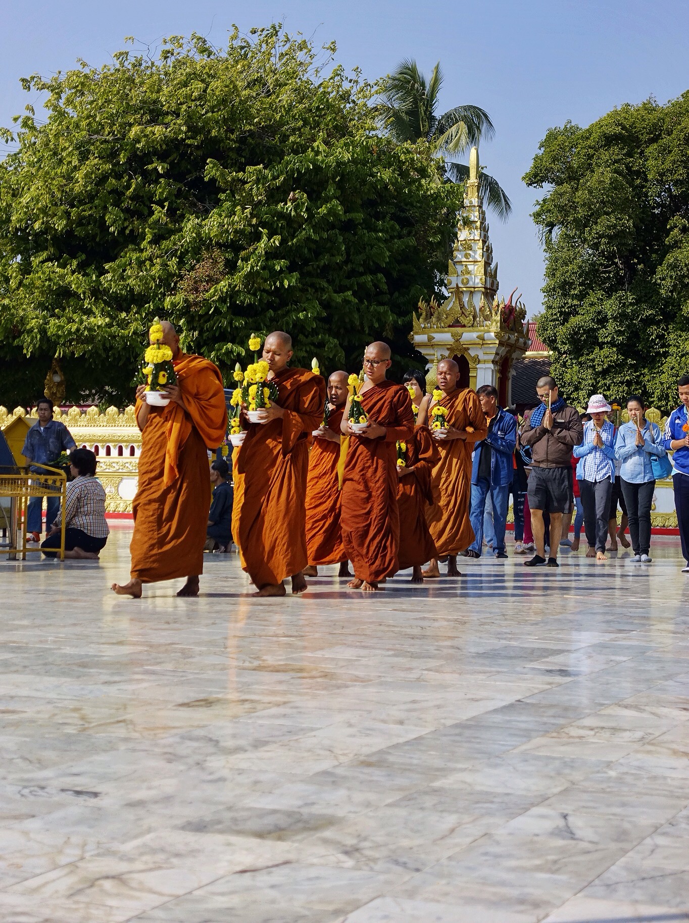 Monks circumambulating at Phra That Phanom.