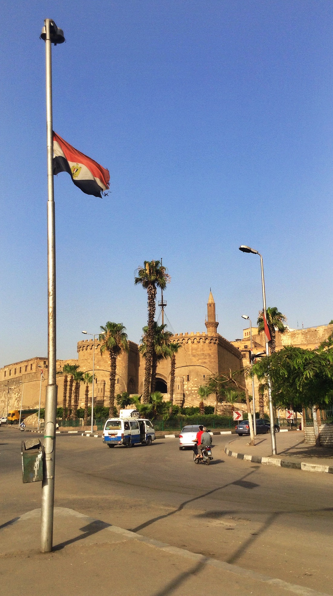 I got off the Metro at the Sayyeda Zeinab stop and walked past the Sayyida Zeinab mosque before continuing on to the Ibn Tulun Mosque. At a roundabout, I stopped to admire the Refa’i Mosque and then made my way towards my final stop the Citadel before heading to the park. I walked past a sign indicating that I was heading in the right direction and where the turn off for the park was. Following the road, I took in my surroundings as it twisted and turned and turned from pavement to cobblestone. I could see some kind of fortress wall through the buildings and figured if I walked enough, I would eventually find the opening and entrance to the major landmark and tourist spot.