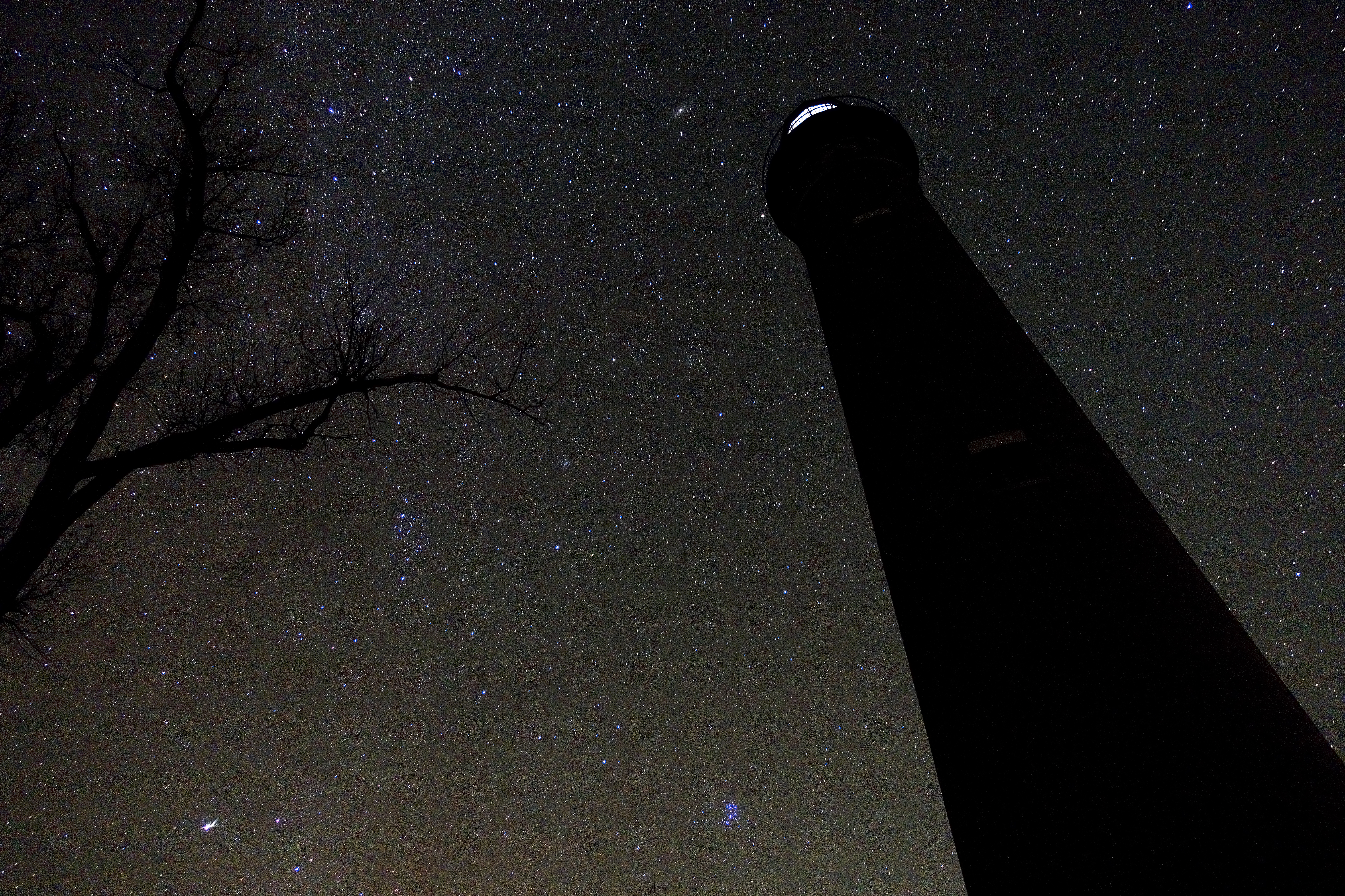 We set up shop around 8 p.m. on the dunes, getting started just doing some astrophotography and my friend experimented with doing some light painting with the lighthouse there.