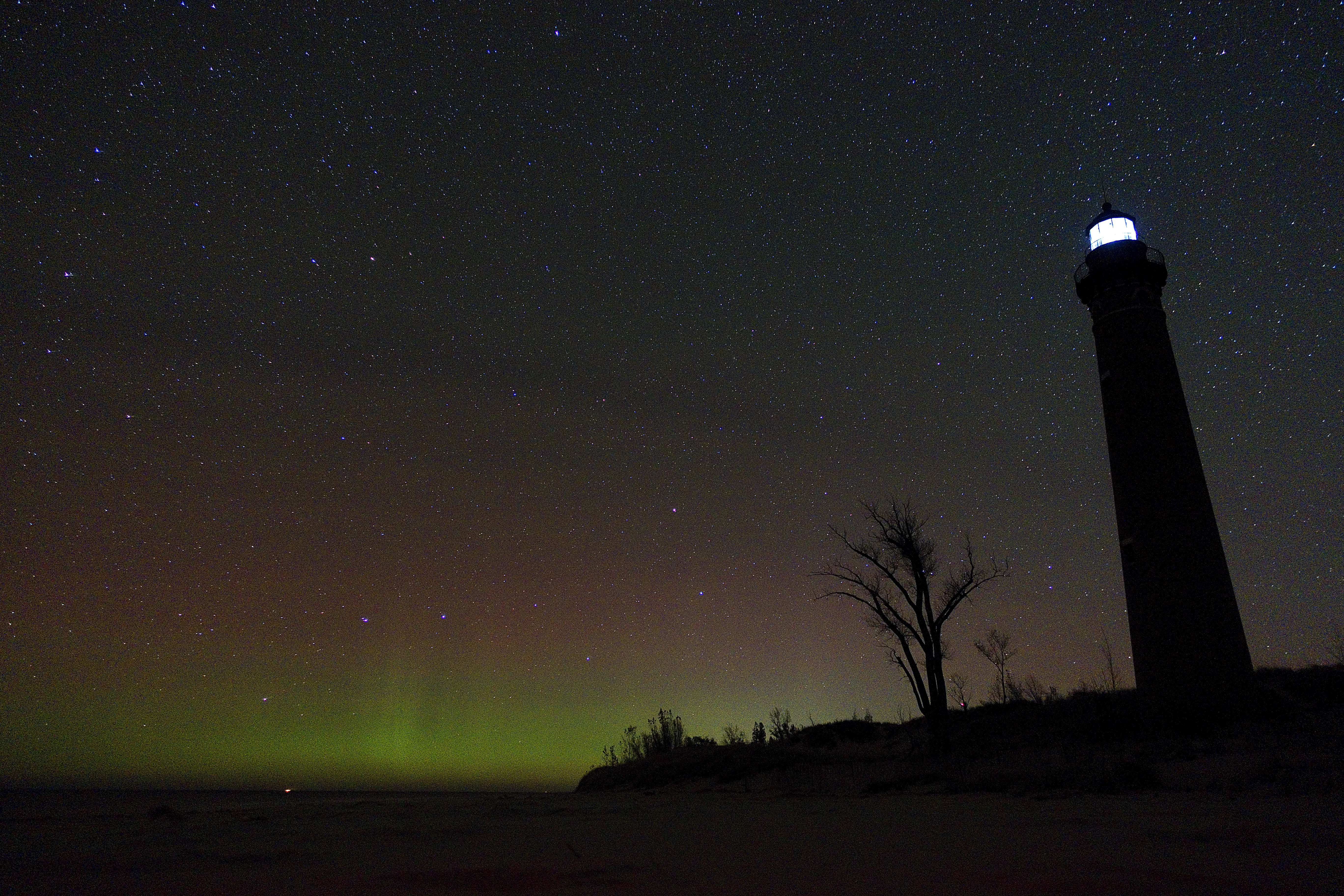 First my mom mentioned it to me, at about 8 p.m., too late to get anywhere away from the light pollution of metro Detroit, and so I brushed it off. However, the next day a friend shared the same information for that evening and asked if anyone was game to go sky watching. I jumped on the opportunity and arranged to head out his way, and we agreed that Little Sable Point would be perfect; it’s pretty far from most major sources of light pollution, jutting out into Lake Michigan a bit and has an excellent view of the northern horizon.