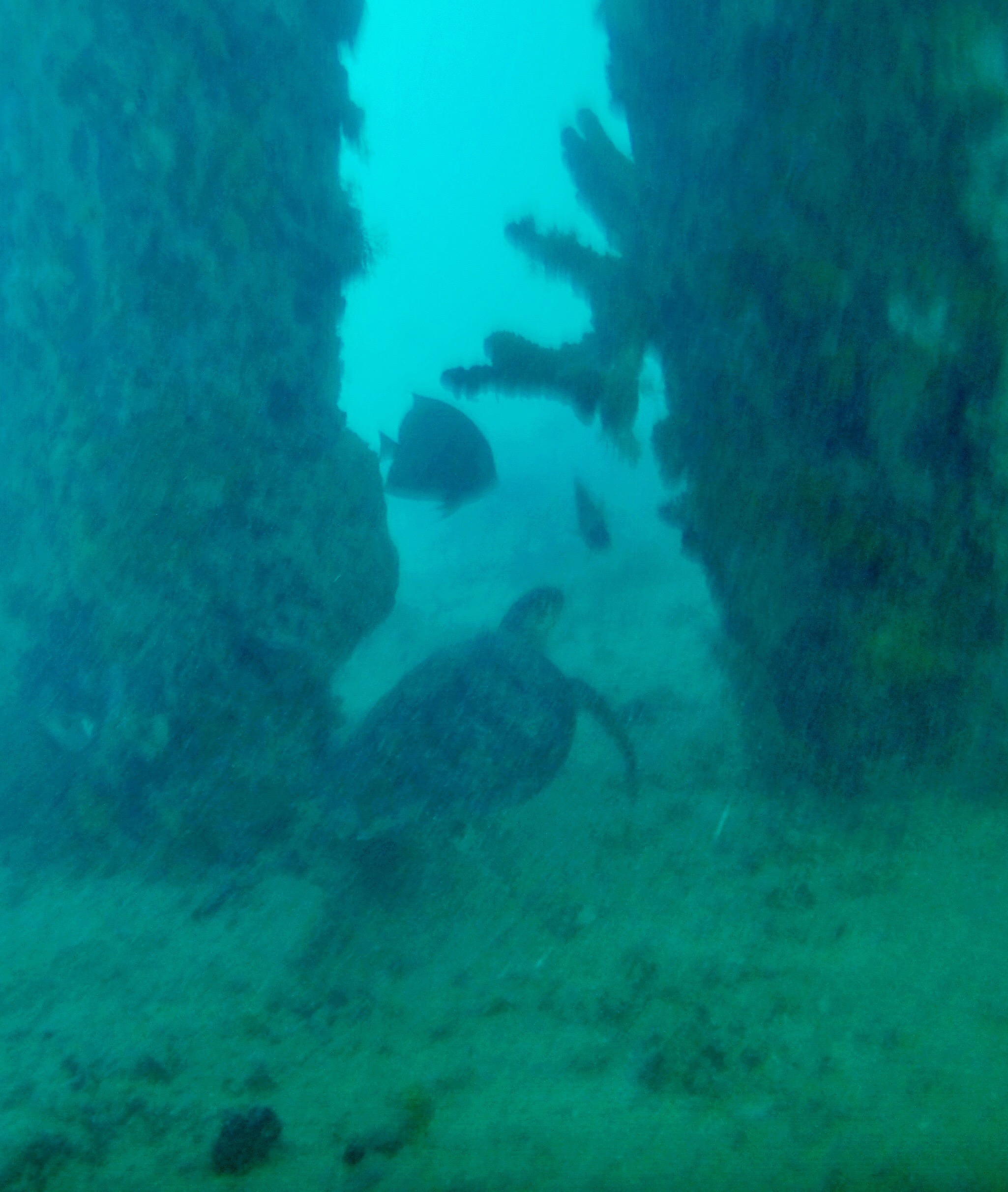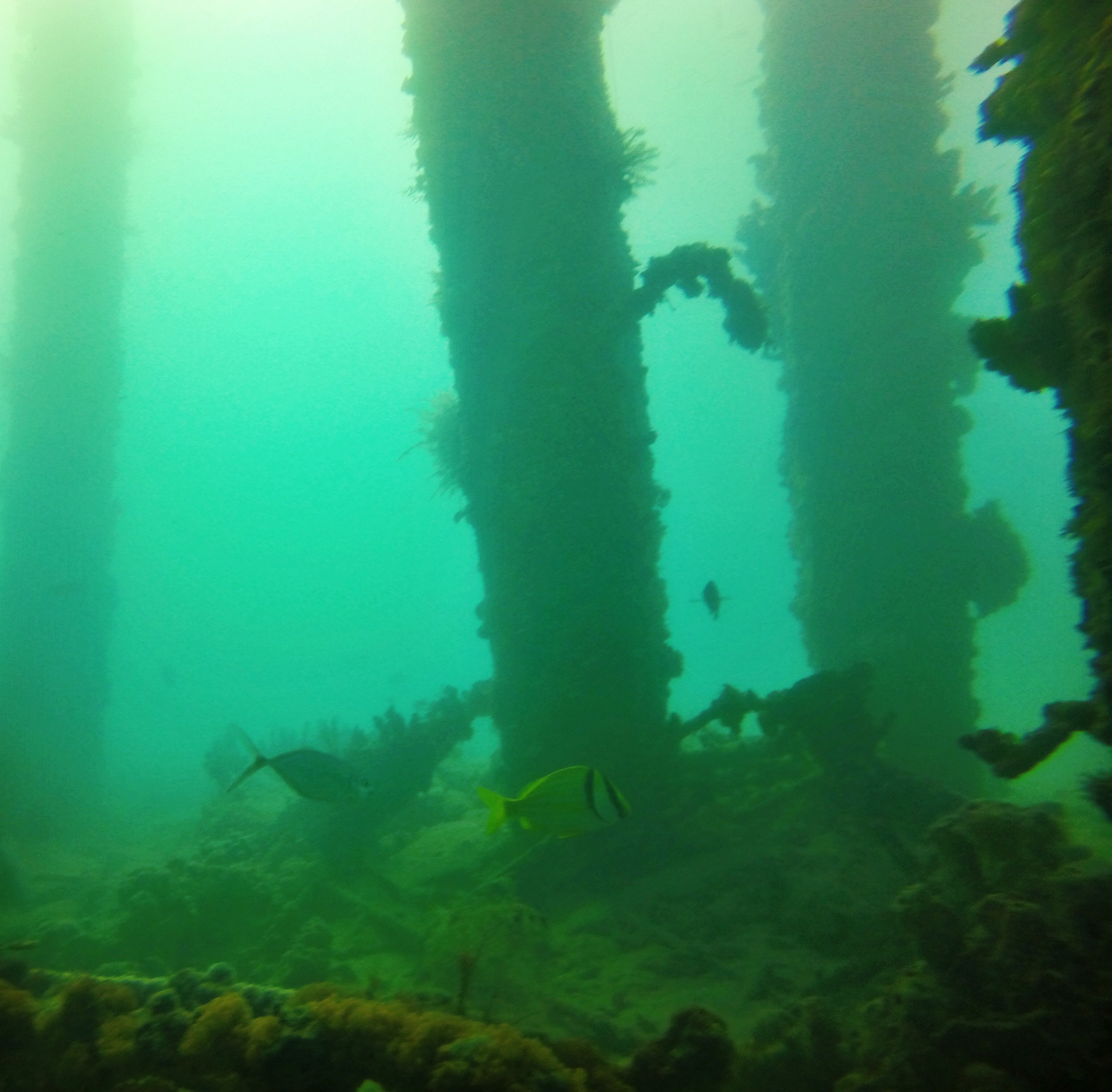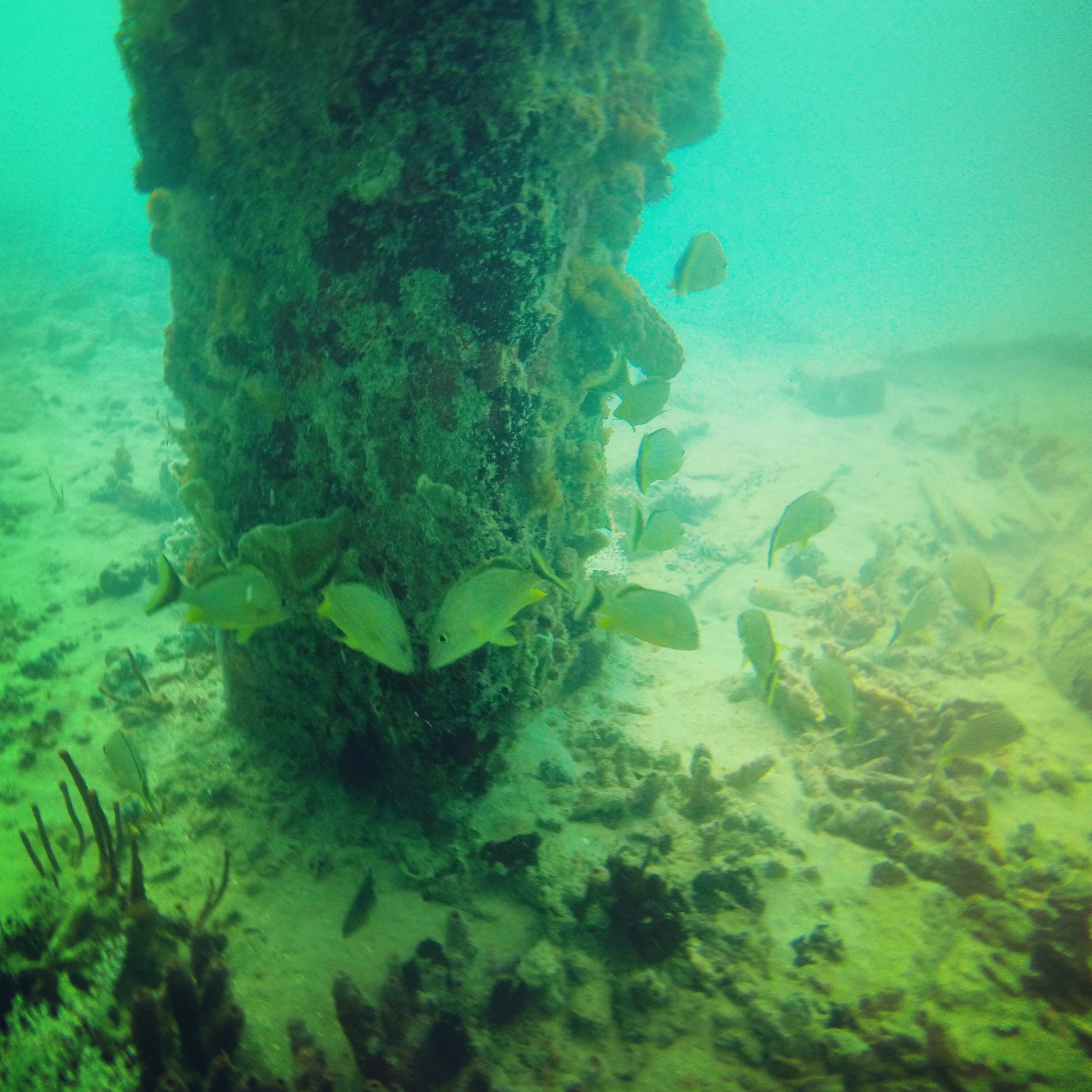 The pier was originally conceived as a bridge to connect to nearby island, Culebra, but there was not enough funding for the complete bridge. So, they used what had been started to make a pier, to have a dedicated area for the ferries to come into and prevent traffic congestion in Isabel Segunda. Turns out the pier was not able to meet the safety requirements and was never put to use. The good news is that corals and sea life to proliferated under the pier creating a really wonderful little world.