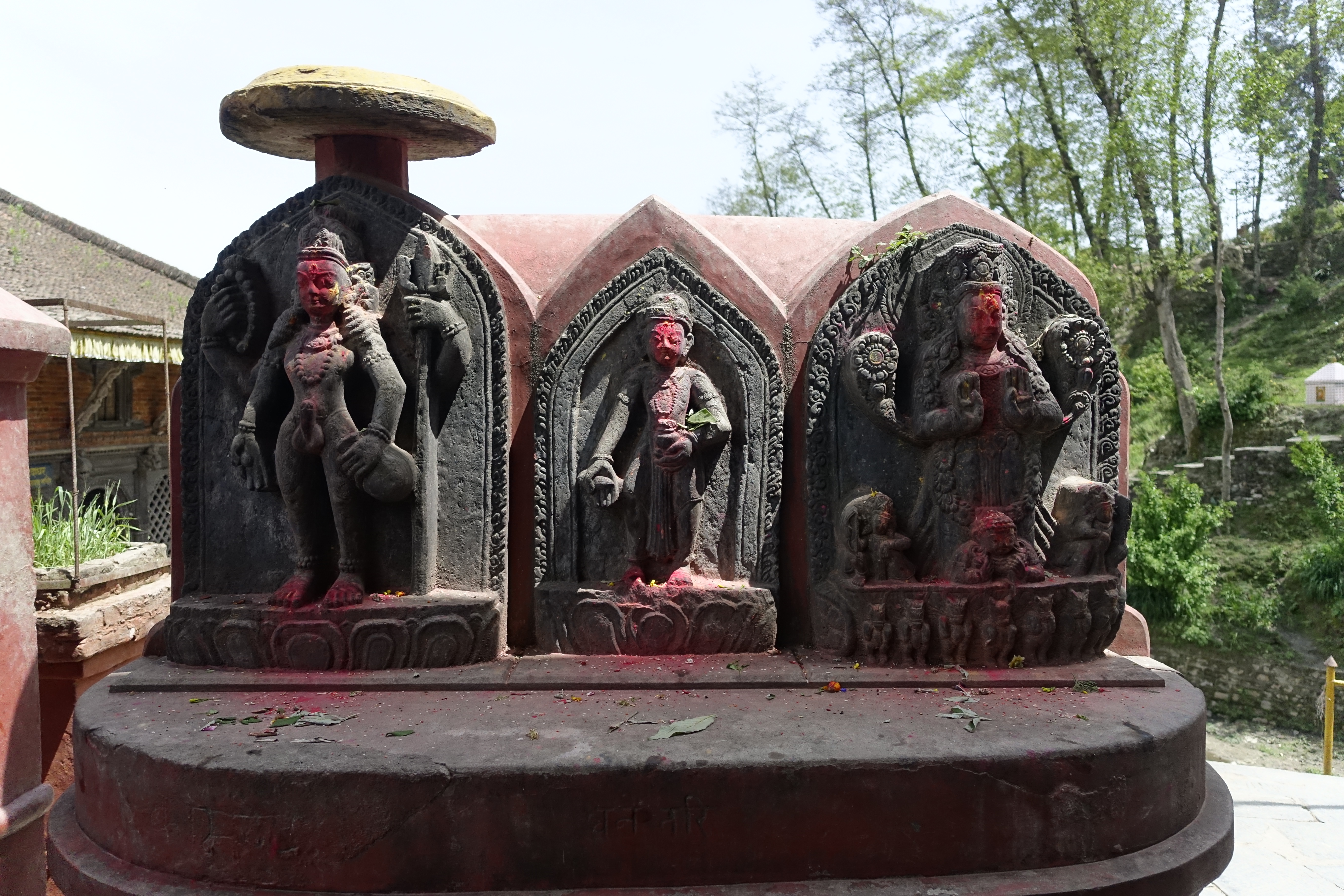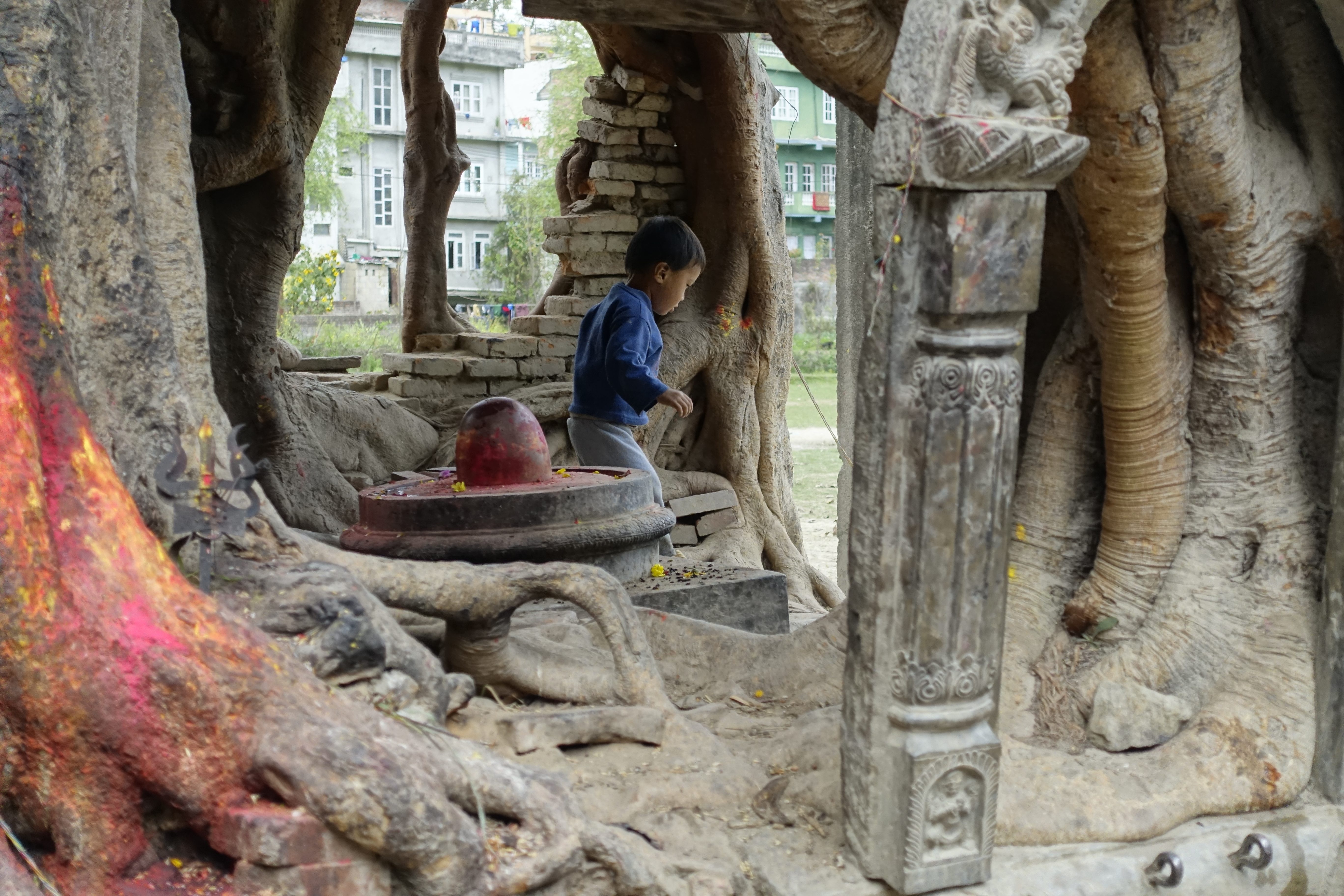 Visiting Nepal will reveal the widespread nature of Hinduism that isn’t always captured in the pictures. There are linga and yoni shrines scattered about; linga are the representation of Shiva’s male energy while yoni are the representation of Shakti’s female energy. Bindis are worn by those who have visited various temples and rubbed the red powder used on various deities on their foreheads. It’s believed that Nepal’s flag was given to them by Vishnu.