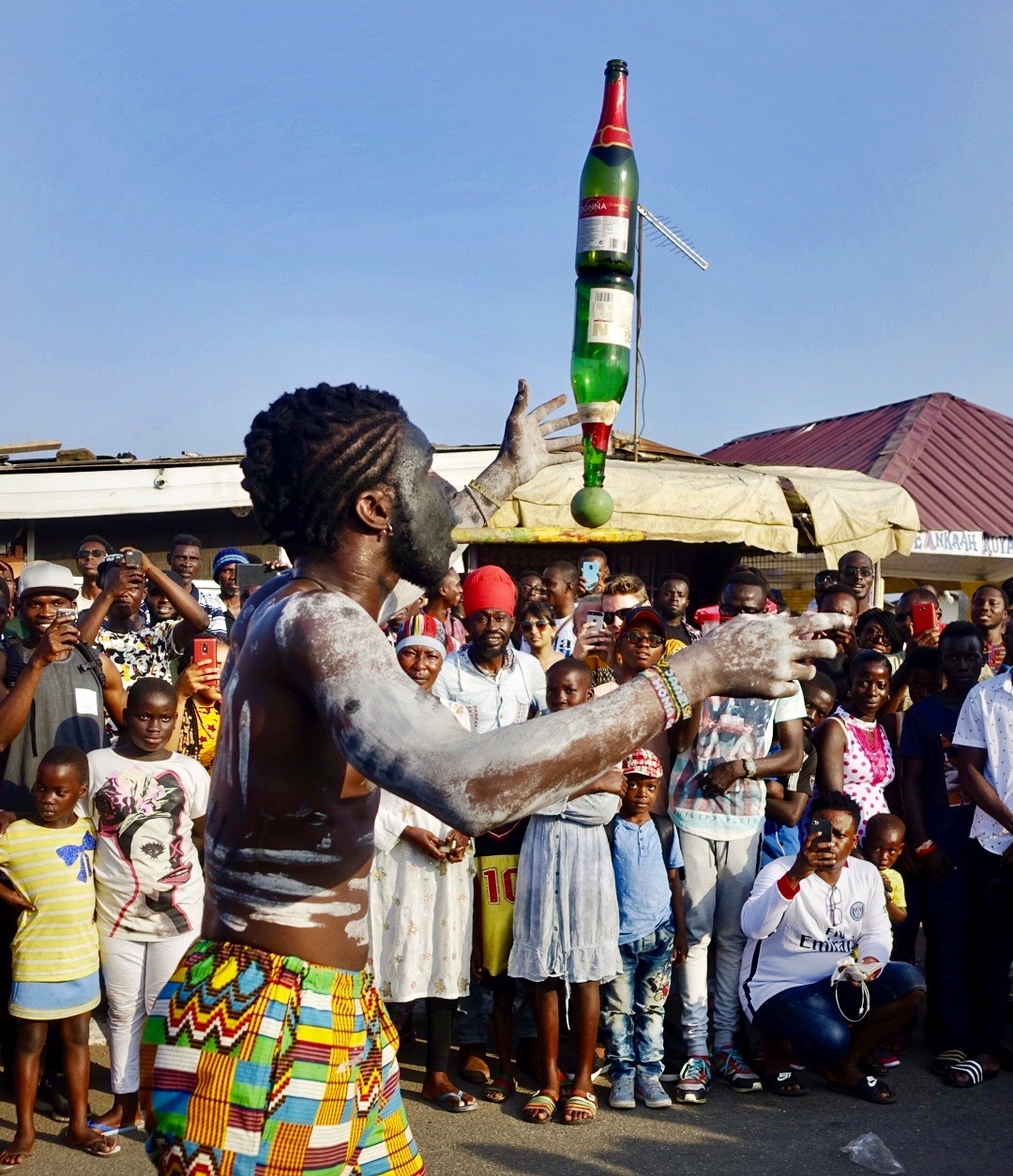 High Street is filled with rivers of people, shoulder to shoulder, flowing in competing directions. From Usher Fort at one end to the Jamestown Lighthouse at the other, the road has been blocked off and foot traffic has taken over, supplemented by street performers, muralists, artists, vendors and the ubiquitous women and children selling water from atop their heads. It’s Chale Wote, Accra’s annual street art festival breaking down the conceptions of West African art.