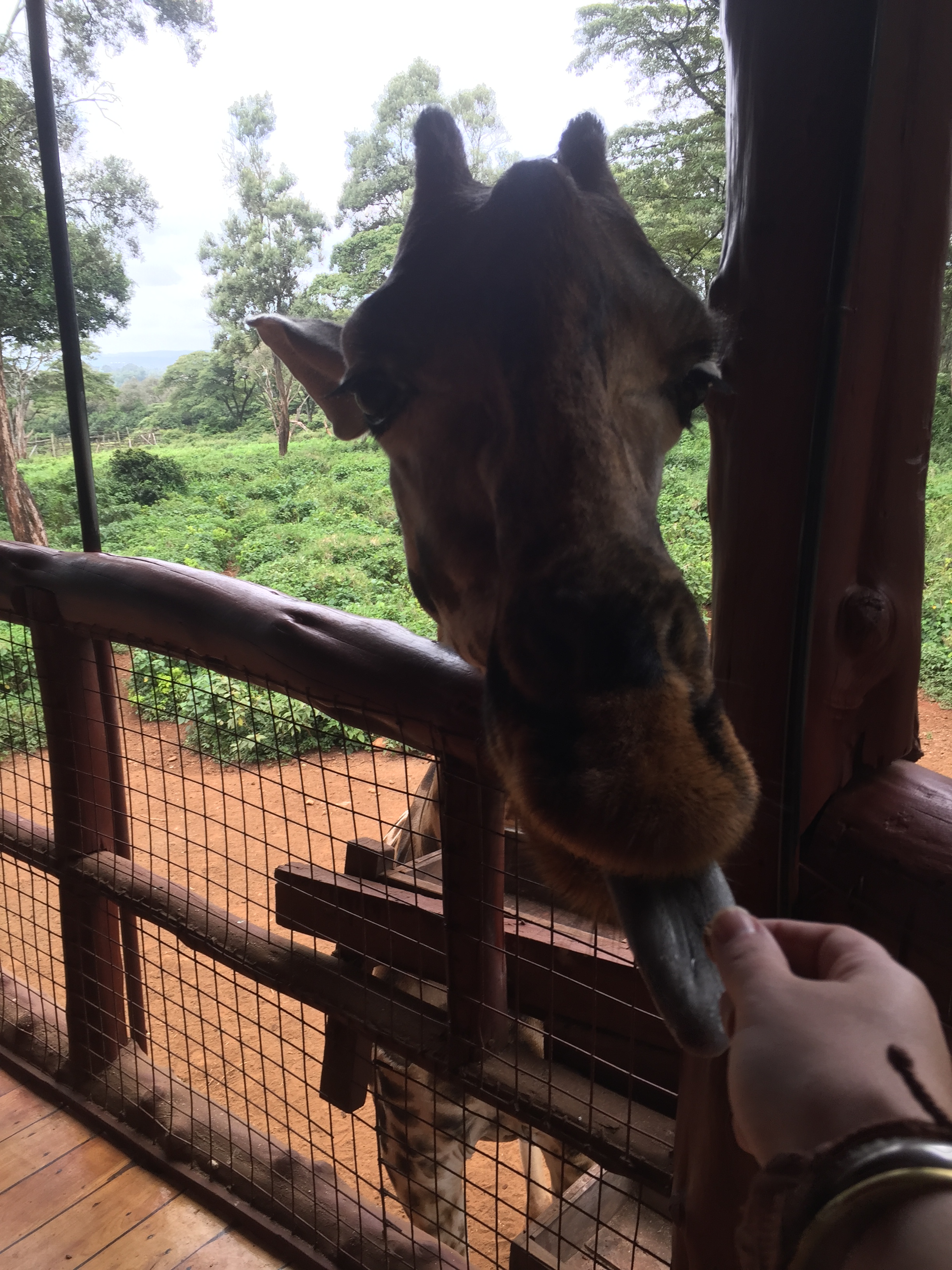 My first tourist stop was the Giraffe Center. It’s about 40 minutes from the city center, and is a sanctuary and breeding center for Rothschild giraffes. There is an elevated platform for visitors to stand on and feed pellets of food to the giraffes. Going first thing in the morning meant that the giraffes were hungry and knew that they could get food at the platform.